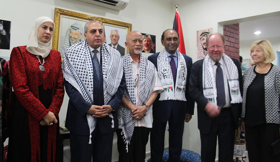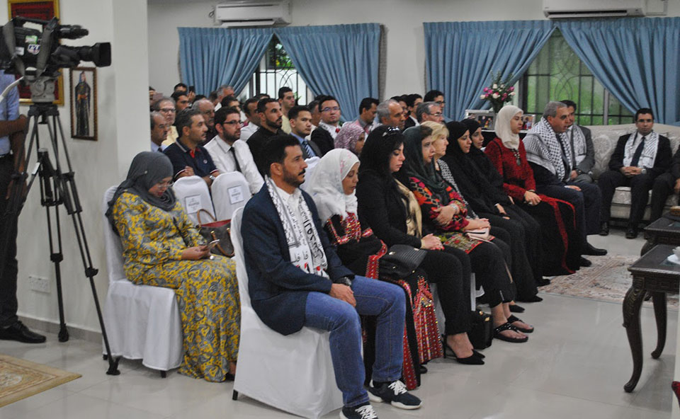 أقامت سفارة دولة فلسطين لدى ماليزيا، .مناسبة عيد الإستقلال الفلسطيني، و ذلك في البيت الفلسطيني، مقر إقامة السفير الفلسطيني، في العاصمة كوالالمبور، بمشاركة المسئولين من وزارة الخارجية الماليزية و حزب أمنو الحاكم في ماليزيا، و عدد كبير من السفراء العرب و الأجانب و زوجاتهم، و الدبلوماسيين، و أبناء الجالية الفلسطينية في ماليزيا، و الاعلاميين و المتضامنين، الذين تزينوا بالكوفية الفلسطينية.