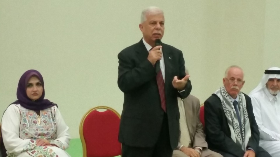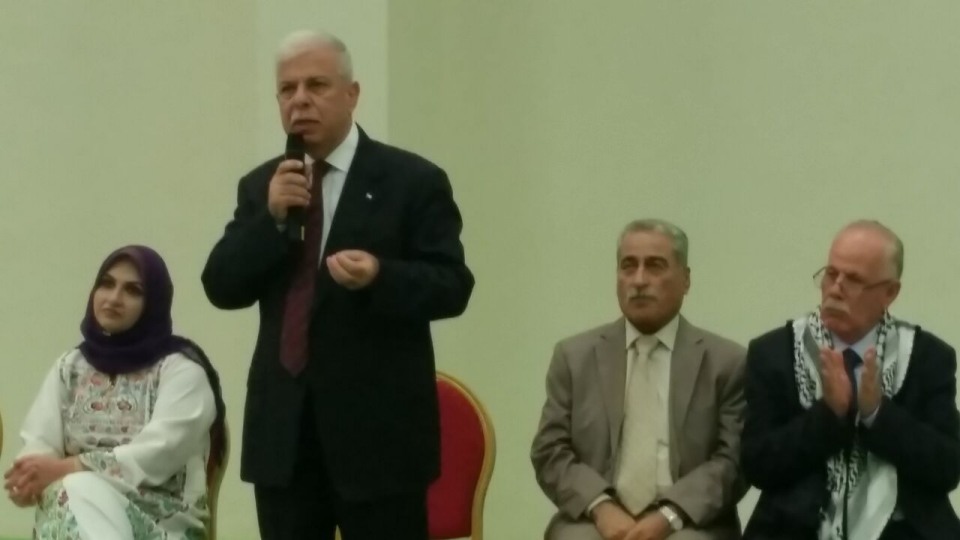 حيث ابتدأت الفعالية بآيات من القرآن الكريم، والنشيد الوطني الفلسطيني، ومن ثم كلمة لسعادة السفير منير غنّام سفير دولة فلسطين بالدوحة، والتي أبرز فيها العديد من المواقف للشهيد الرمز ياسر عرفات، خاصة مراحل حياته الأولى، والأخيرة حيث عمل لدى مكتب الشهيد في تونس، وكان قريباً منه، وحث الطلاب على الجد والاجتهاد وصولاً لتحقيق رغبة الشهيد، بأننا لا يمكننا أن نقهر الاحتلال إلا بالعلم، وقد أبرز سعادة السفير جوانب عديدة من حياة الرئيس التي كانت تمثل رؤية ثاقبة في كل أمور الحياة التي تحدث في هذا الزمن.