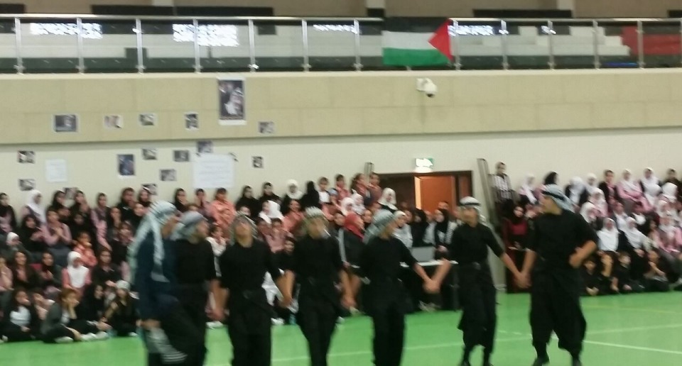 وبدأت الفقرات الفنية التي تعكس الالتزام بالهوية الفلسطينية، وكذلك تم عرض فيديو يبرز مسيرة ياسر عرفات حتى استشهادة.