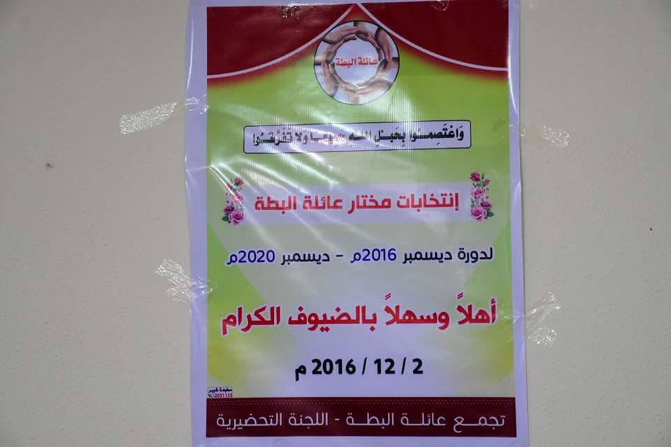 عائلة البطة تختار مختارها الجديد في عرس ديمقراطي فريد من نوعه، يوم الجمعة الموافق 02-12-2016 في ديوان العائلة خان يونس الشيخ ناصر، وتقدم للانتخابات كل من الدكتور المهندس فوزي محمد البطة والسيد كمال محمد البطة، وفاز بالانتخابات الدكتور المهندس فوزي محمد البطة بعد انتهاء المدة القانونية اربع سنوات للمختار السابق السيد محمد اسعاف البطة، وذلك حسب دستور عائلة البطة المتوافق عليه قبل انتخاب المختار السابق محمد اسعاف البطة.