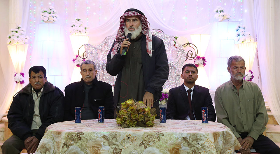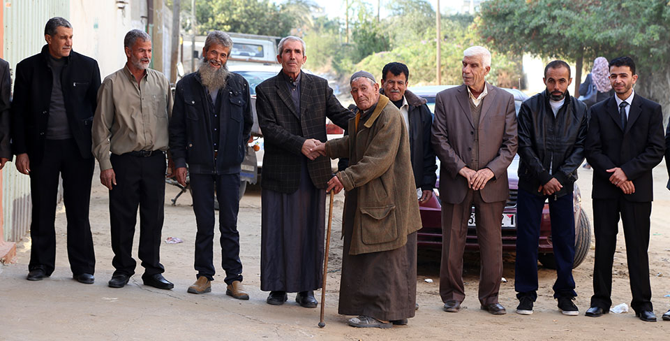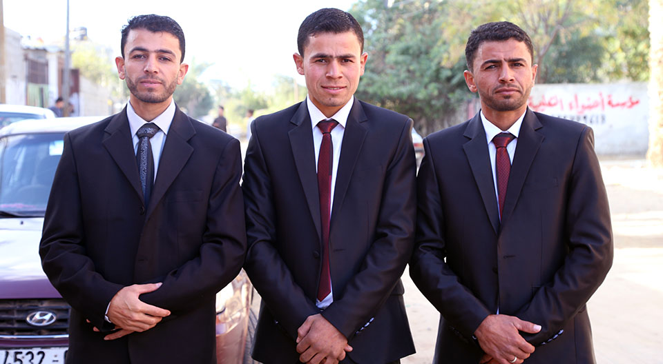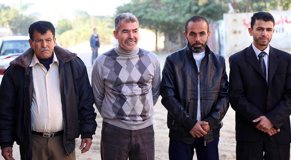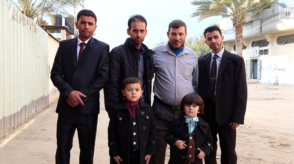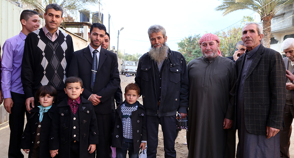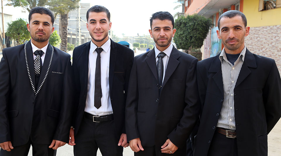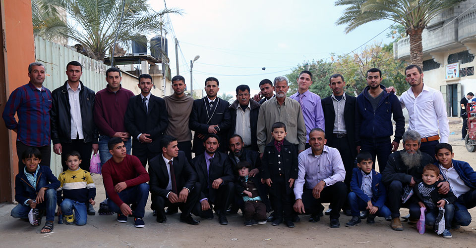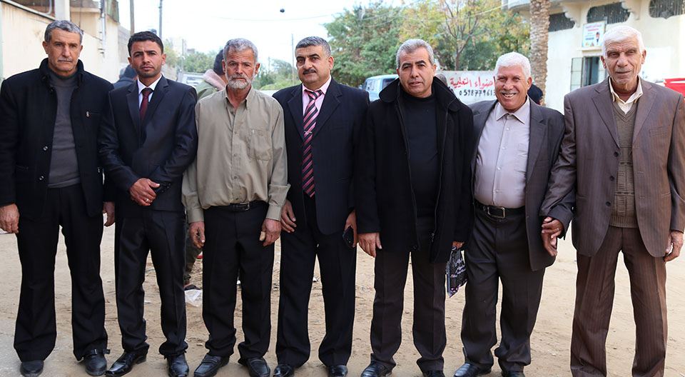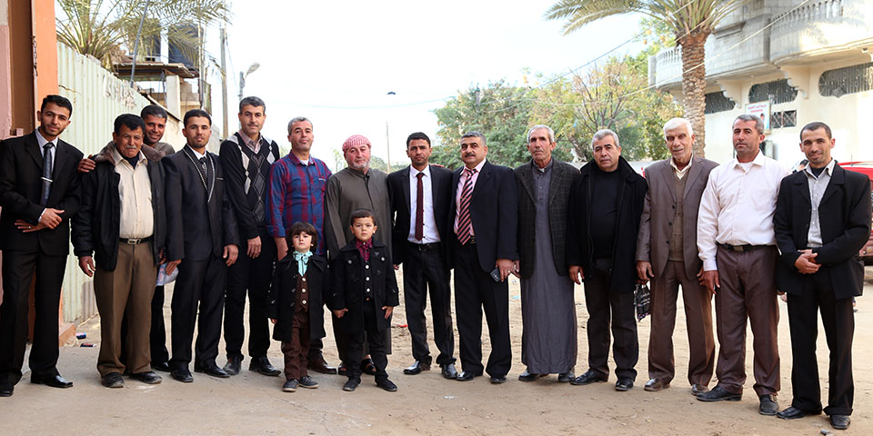 السيد سمير(والد العريس)، العريس، الشيخ ناجي عنتر الأغا، السيد محمود (والد العروس)، السيد فالوجي(سعيد) جابر الأغا(عم العريس)