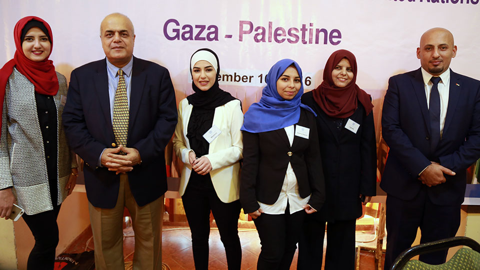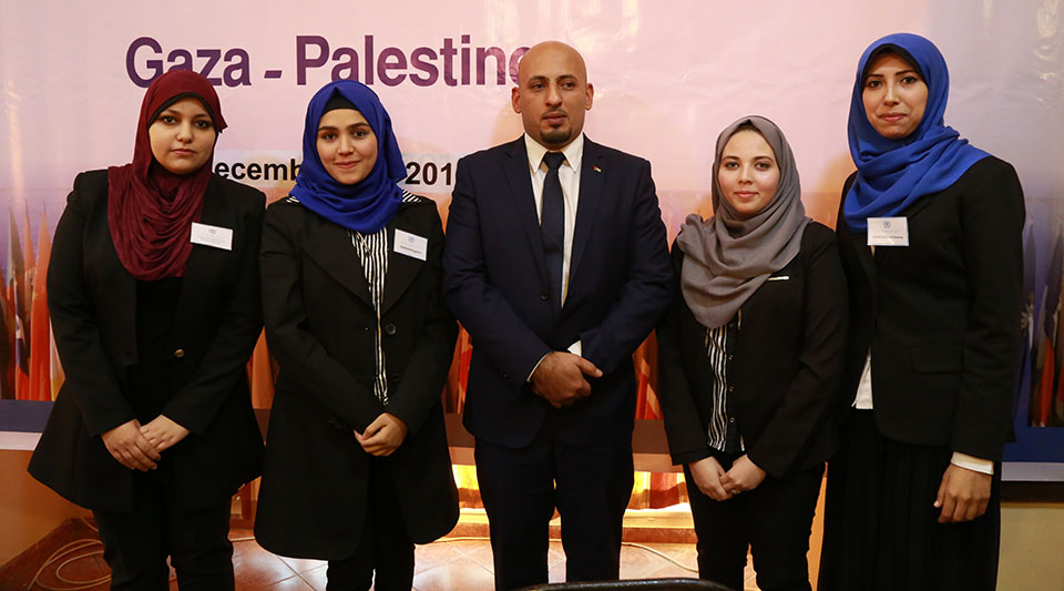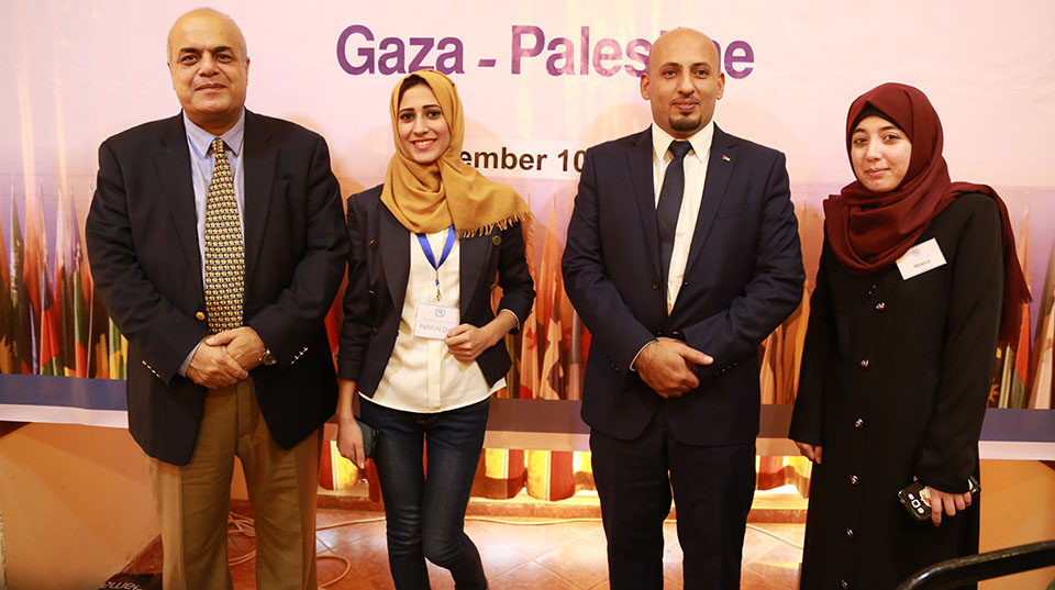 أ. ريم أمين الأغا ، د. يحيى قاعود ( مدير البرنامج)، أ. اوطان محفوظ الأغا (من فريق البرنامج)، د.علاء أبو عامر