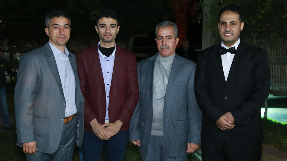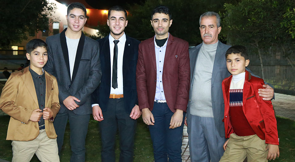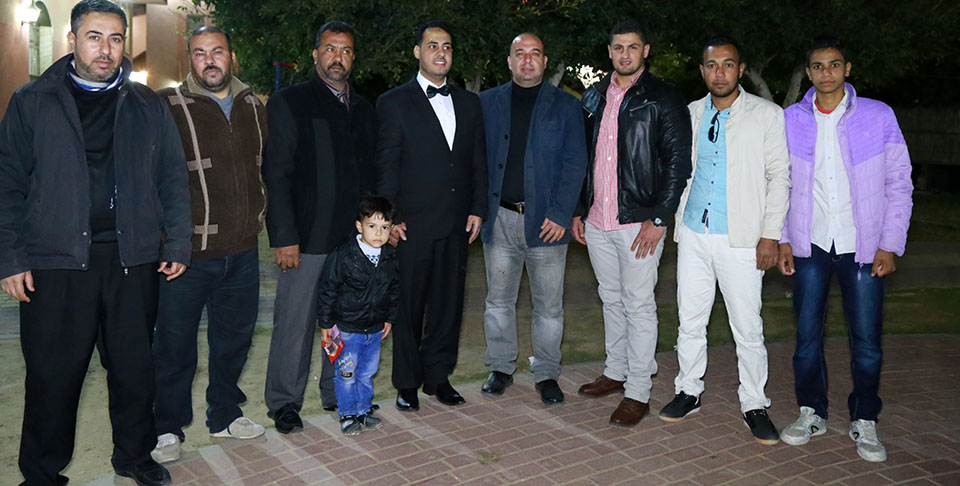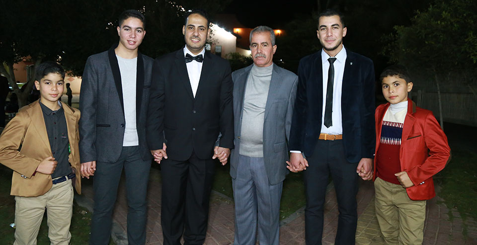 ..،أ. نبيل فالوجي الأغا، والد العروس، أ. تبسيم الأغا، أ. عمار فؤاد الأغا، الحاج محمد سعيد الأغا