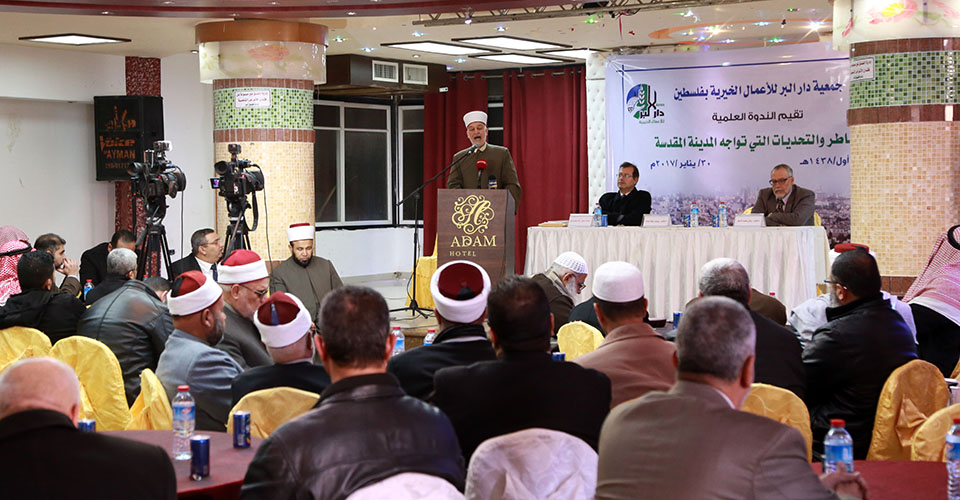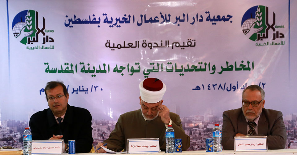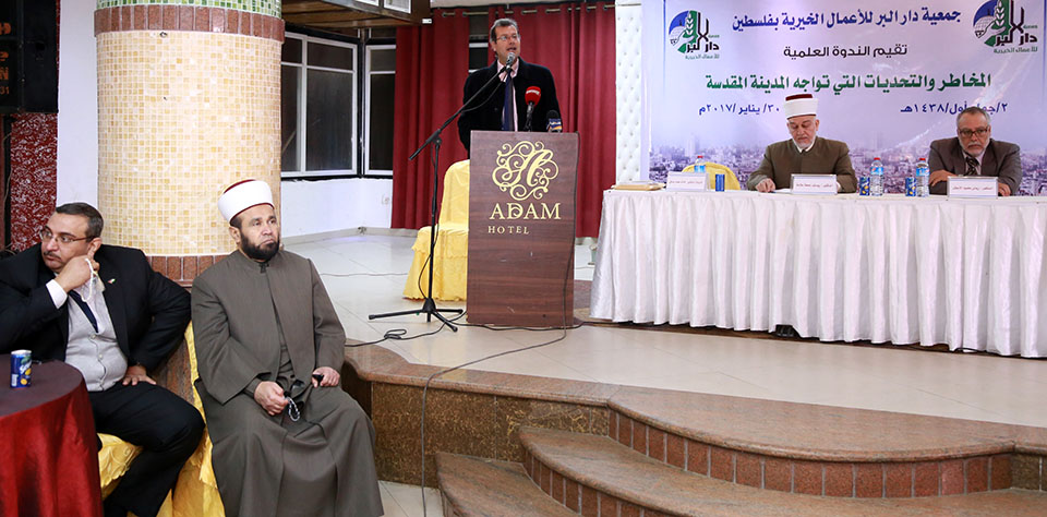 غزة- فندق أدم- 30-01-2017- نظمت جمعية دار البر للأعمال الخيرية، ندوة علمية بعنوان: (المخاطر والتحديات التي تواجه المدينة المقدسة)