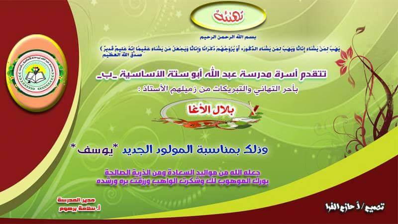 الرئيسة/مولود جديد/رزق أ. بلال باسم علي عثمان الأغا بمولود مولود جديد رزق أ. بلال باسم علي عثمان الأغا بمولود تاريخ النشر : الإثنين | 06-02-2017 | 17:48 4140 رزق أ. بلال باسم علي عثمان الأغا بمولود، يوسف، وألف مبارك. اضغط هنا للتواصل أو التعرف على أ. بلال باسم علي عثمان الأغا يمكنك تلقي أحدث الأخبار أول بأول بانضمامك لإحدى مجموعات الواتساب الخاصة بالعائلة من خلال الضغط هنـا اظهر المزيد