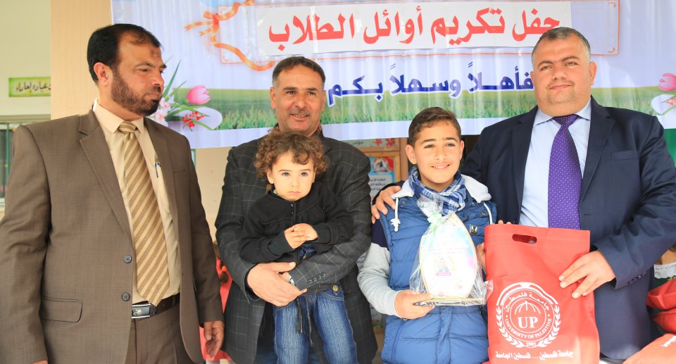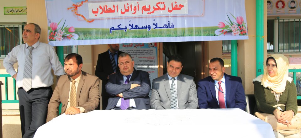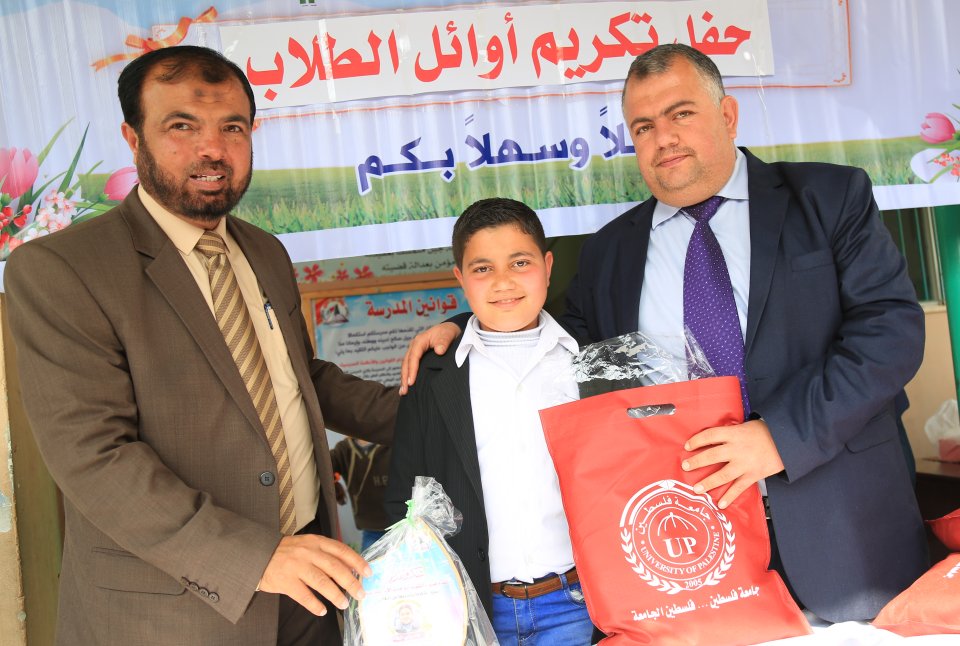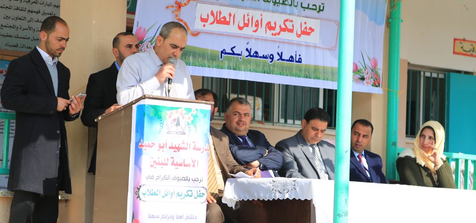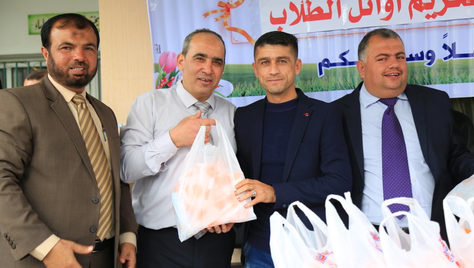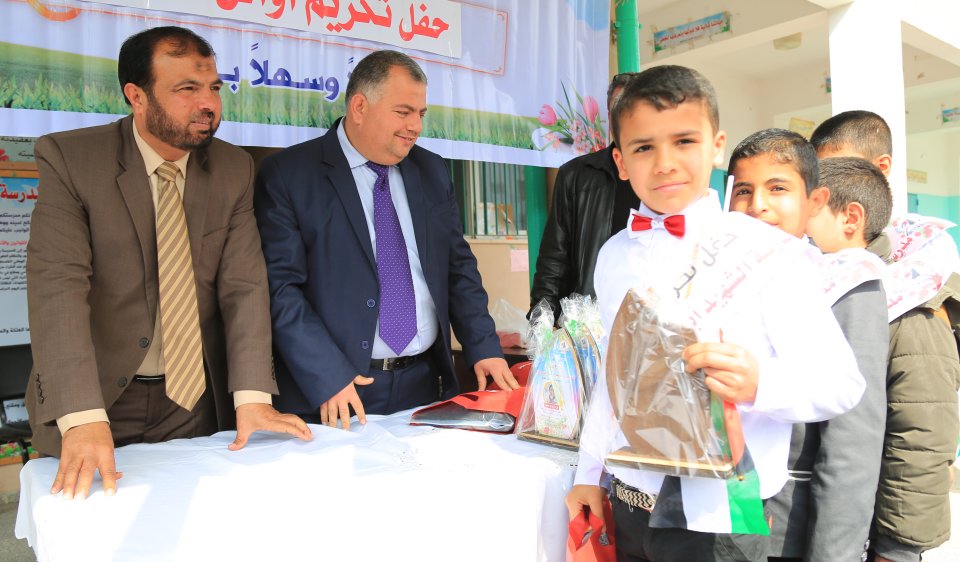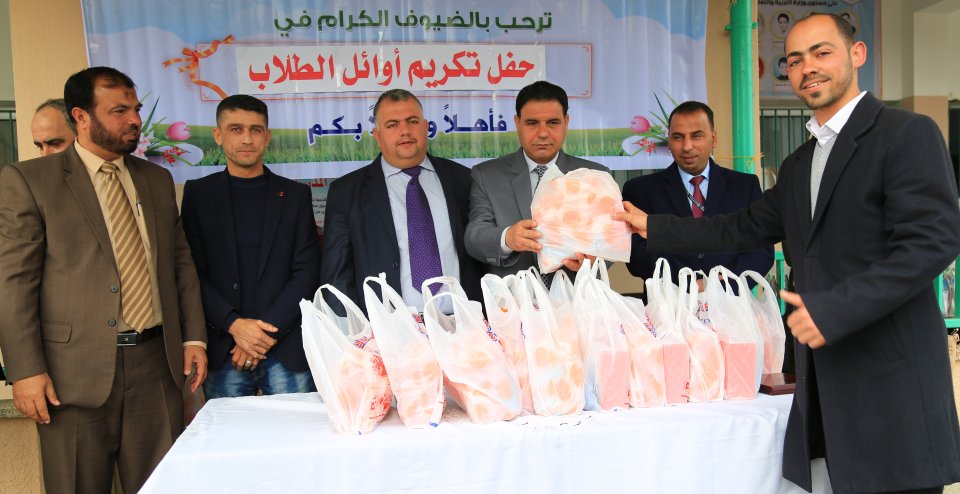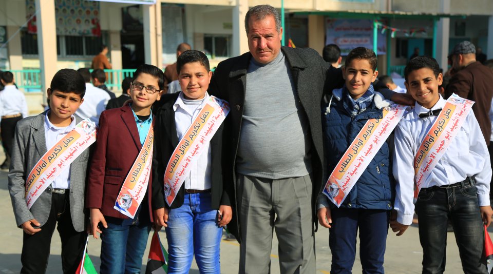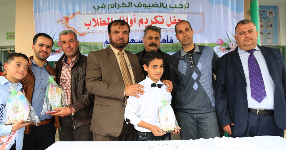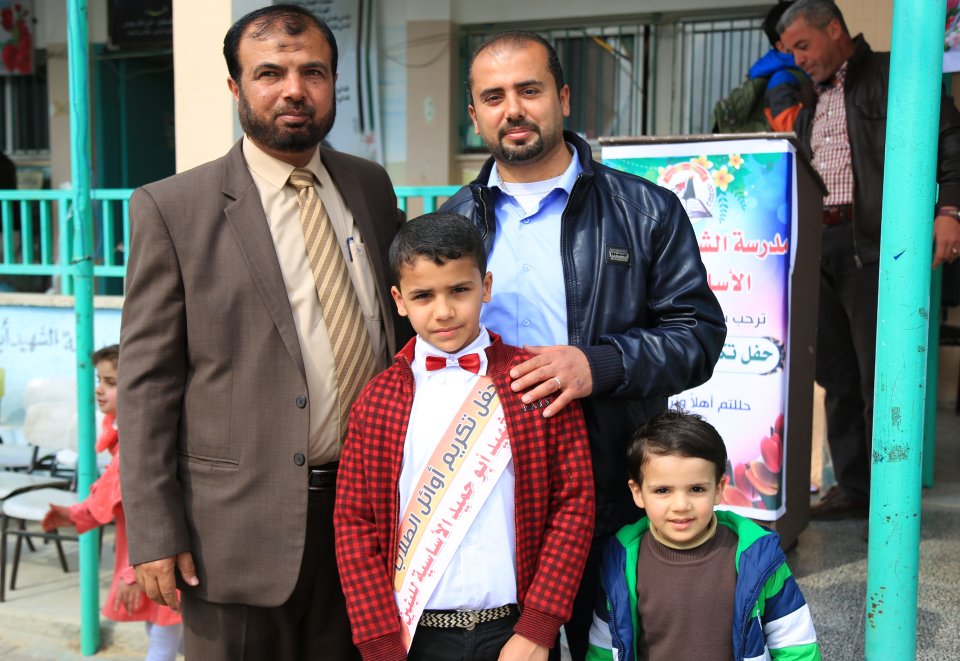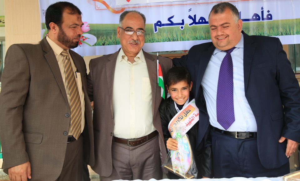 رجل الاعمال محمد نايف الأغا، أ. محمد زارع الاسطل، أ.مجدي أبوموسي (مدير المدرسة)، أ. حسام محمد الأغا