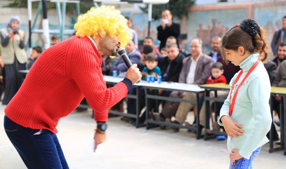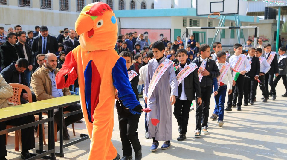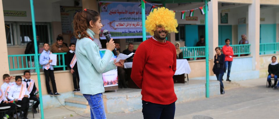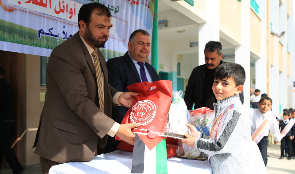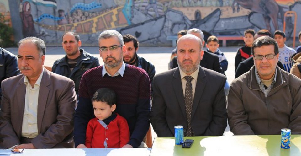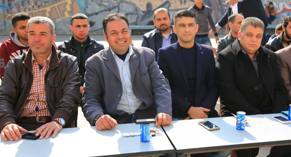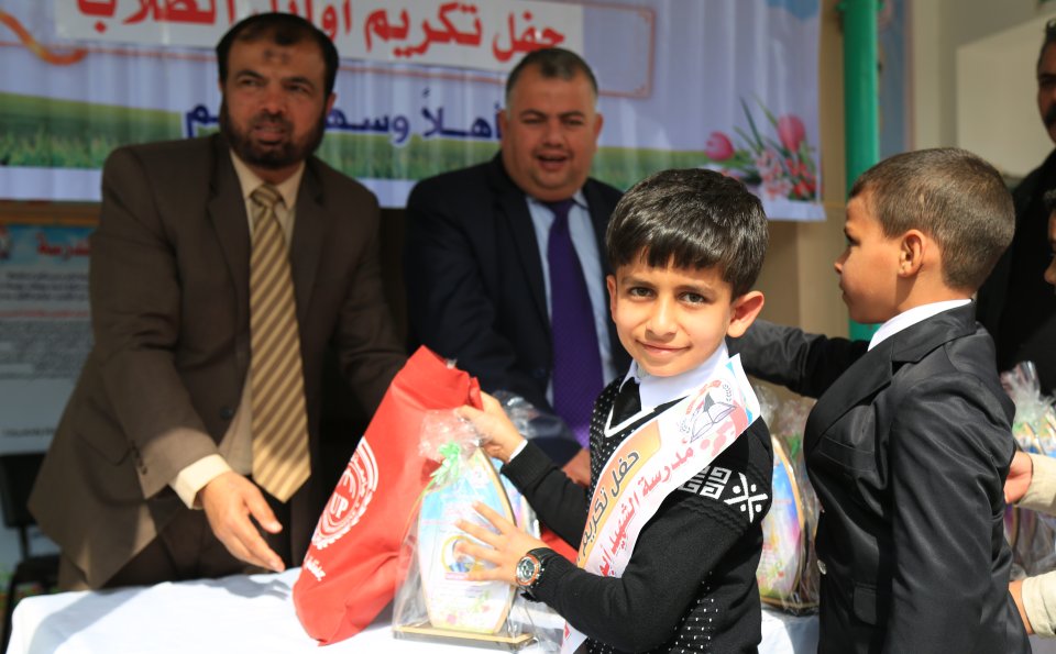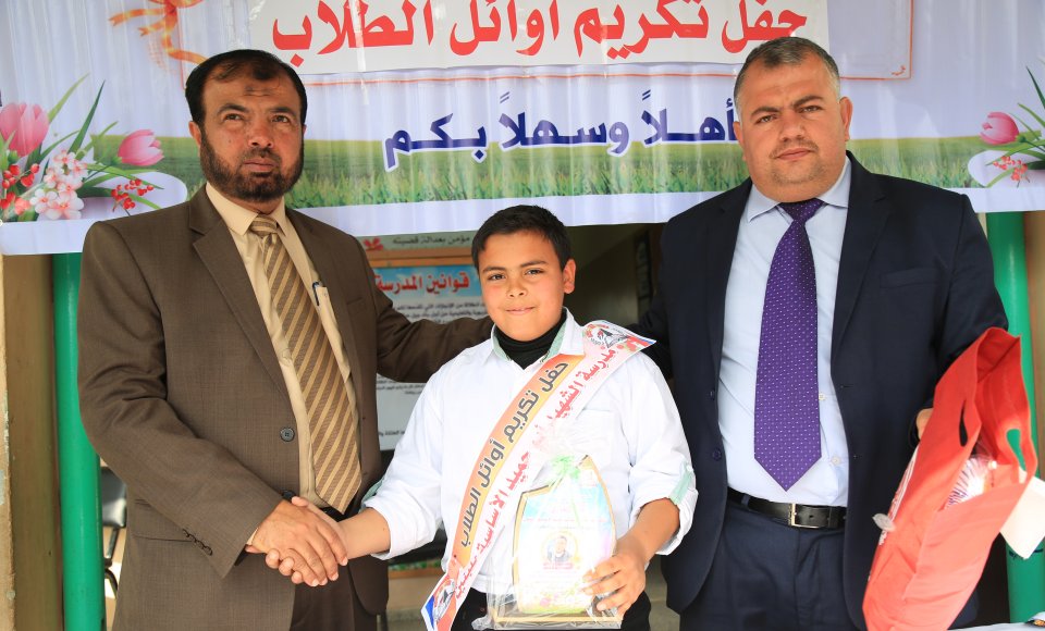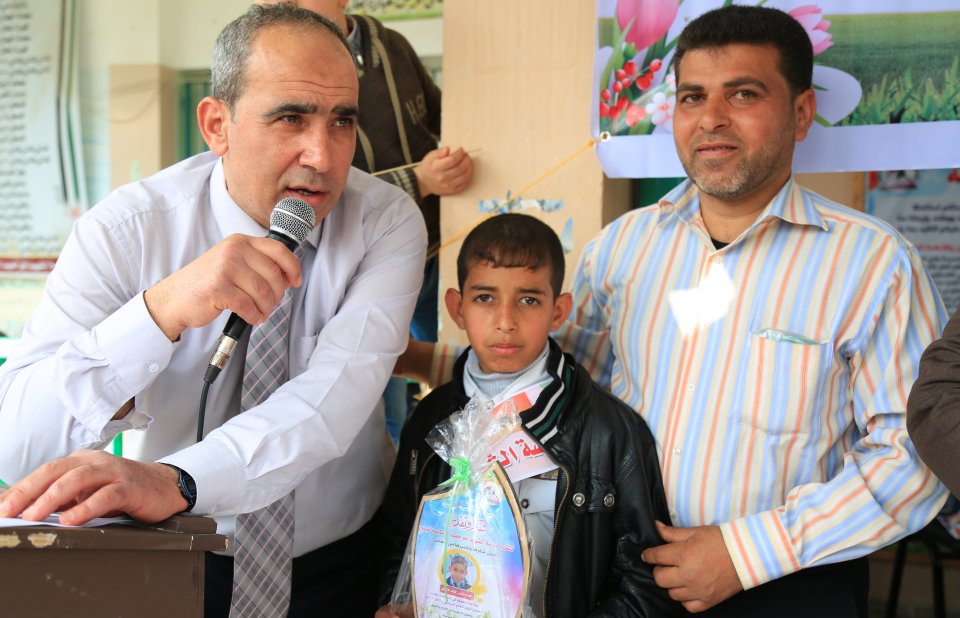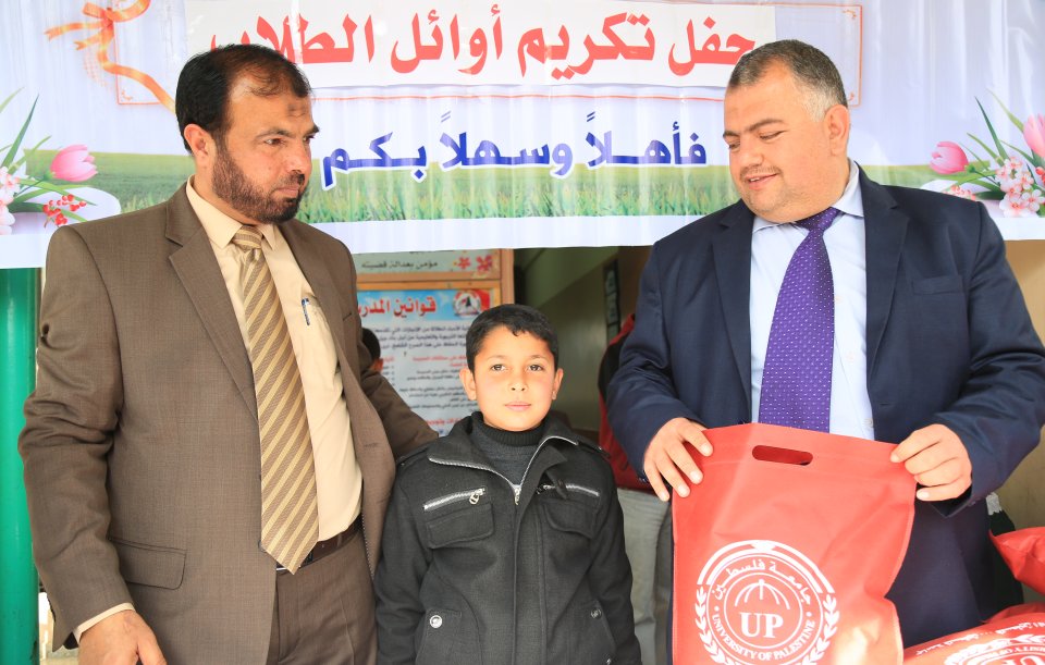 رجل الاعمال محمد نايف الأغا، أ. محمد زارع الاسطل، أ.مجدي أبوموسي (مدير المدرسة)، أ. حسام محمد الأغا