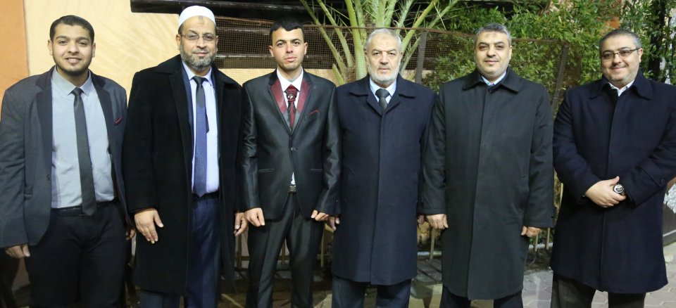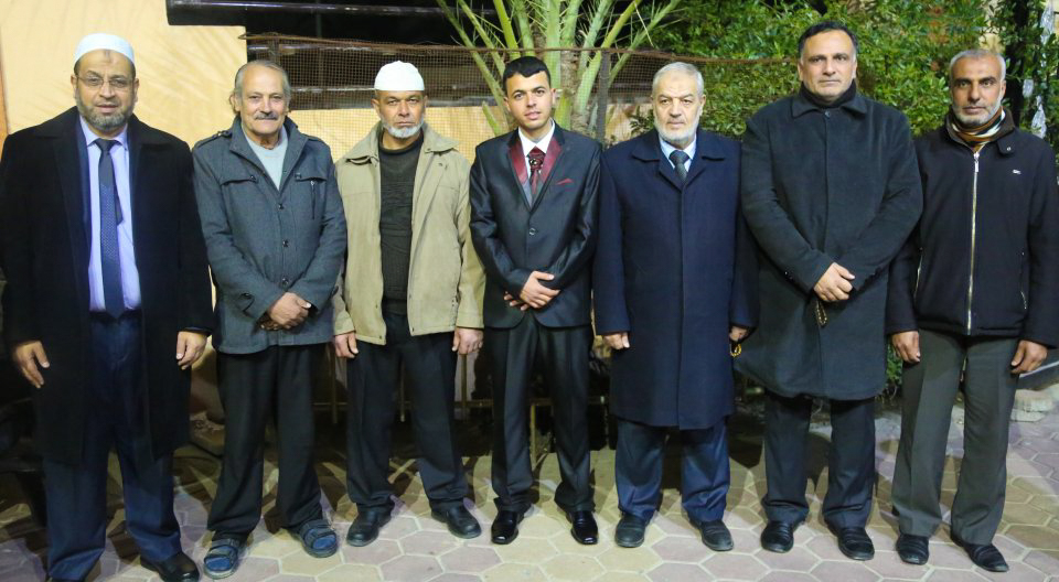والد العروس، أ.عمر يحيي الاسطل(عديل العريس)، العريس، أ. محمد أبو هداف(عديل العريس)، محمد شبير(شقيق العروس)