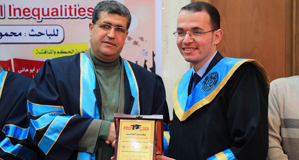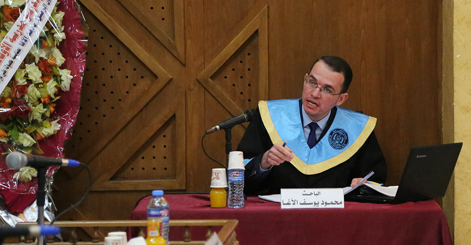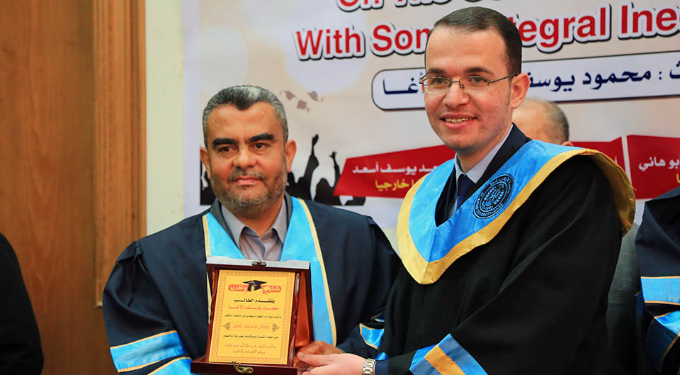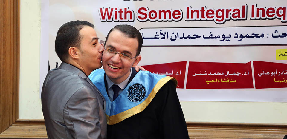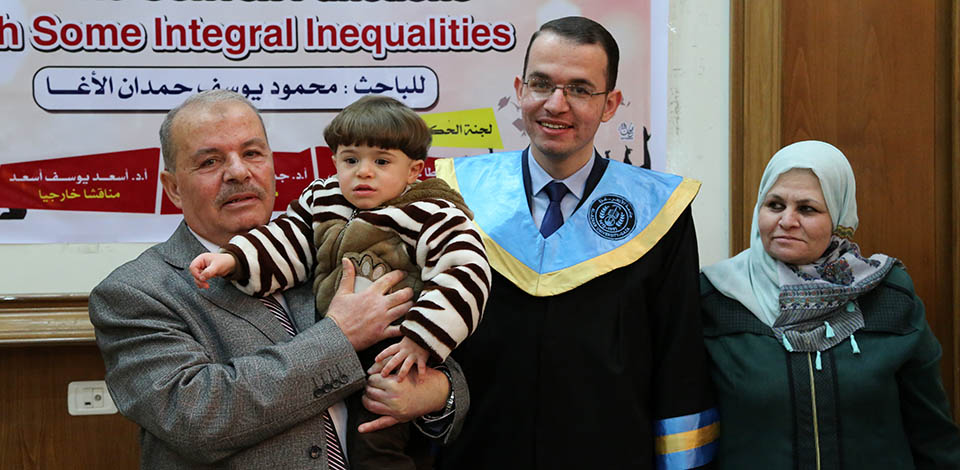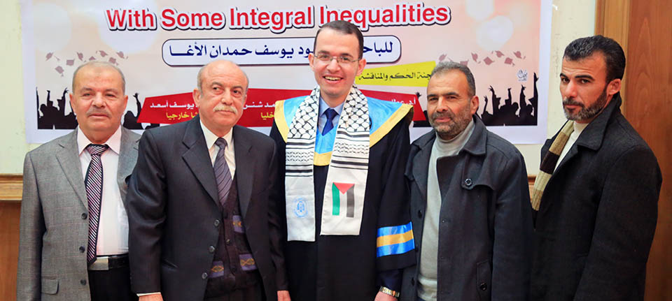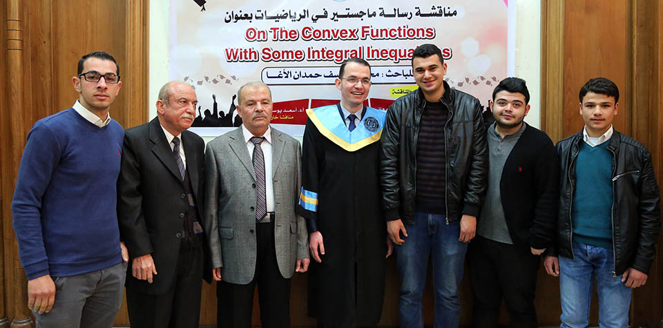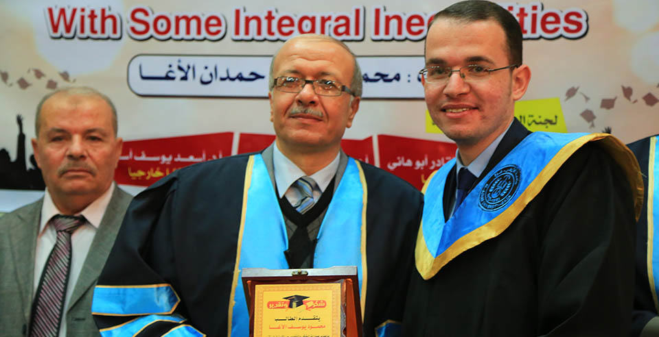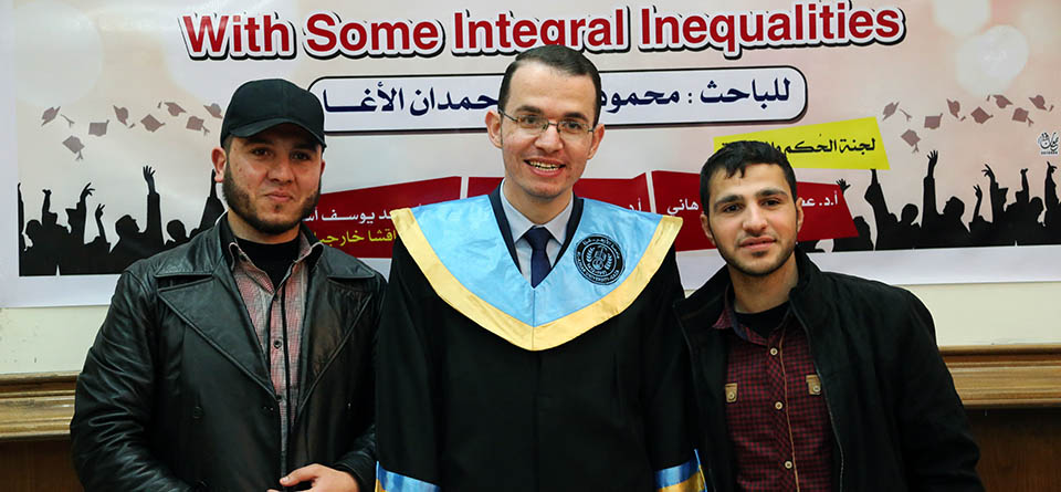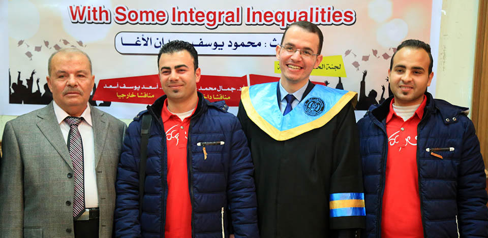قاعة بيسان- جامعة الأزهر- غزة- الإثنين الموافق 20-20-2017 ، الباحث محمود يوسف حمدان الأغا ينال درجة الماجستير في الرياضيات البحتة والتي كانت بعنوان: