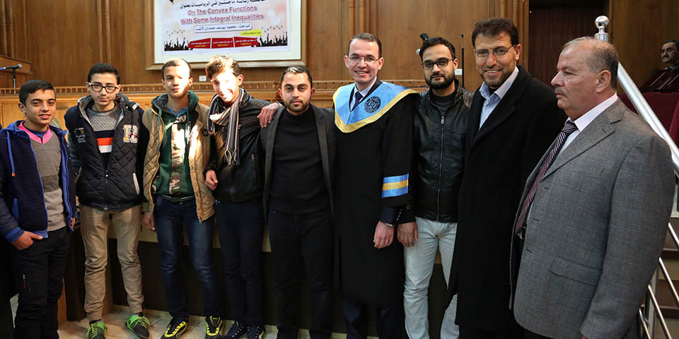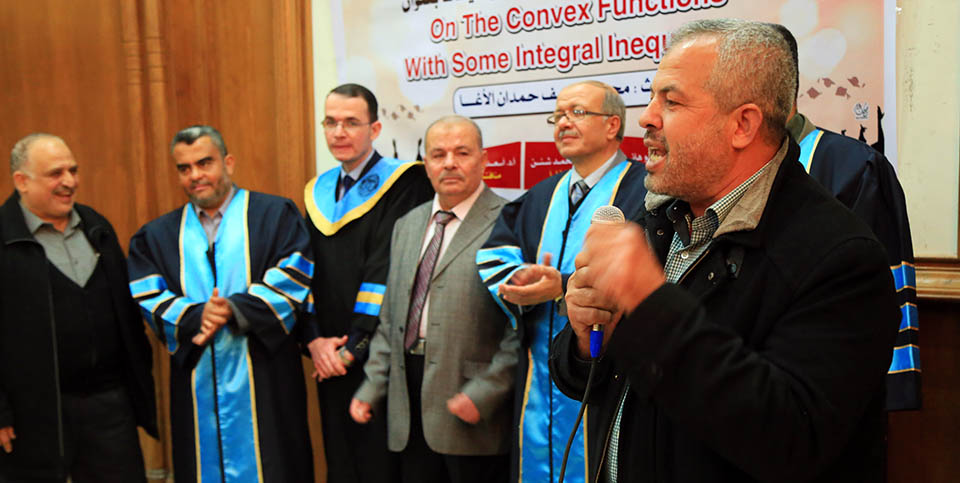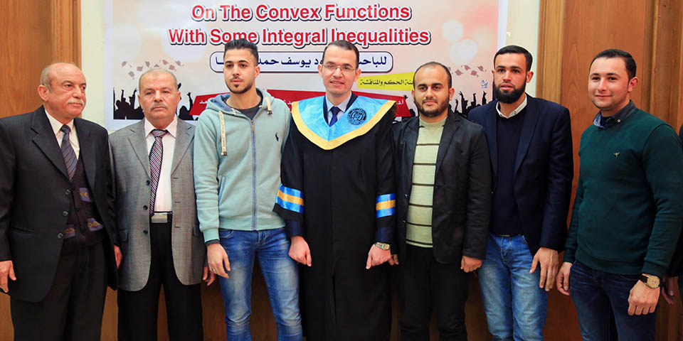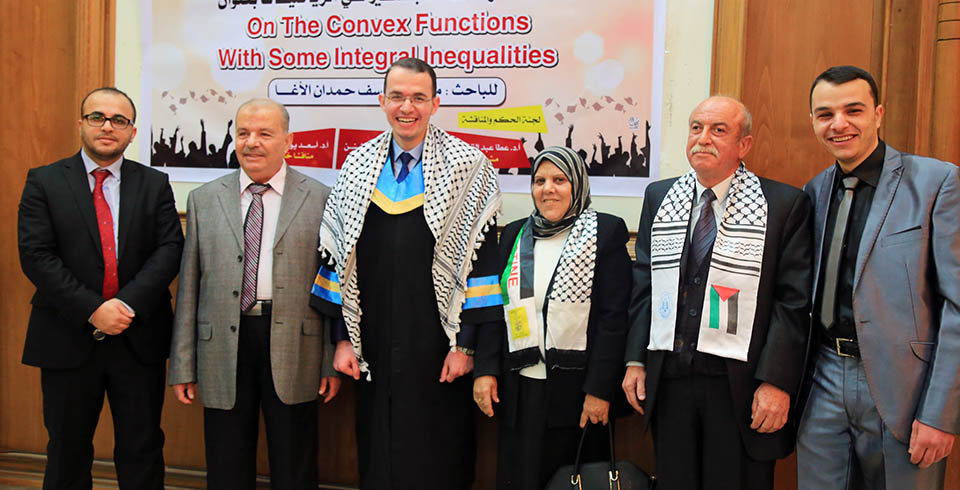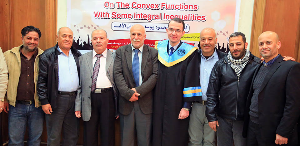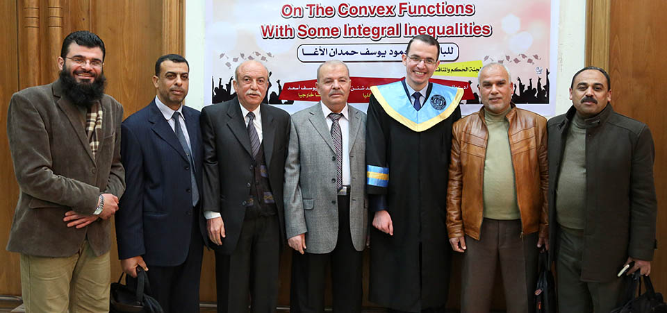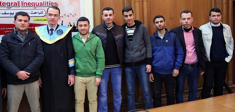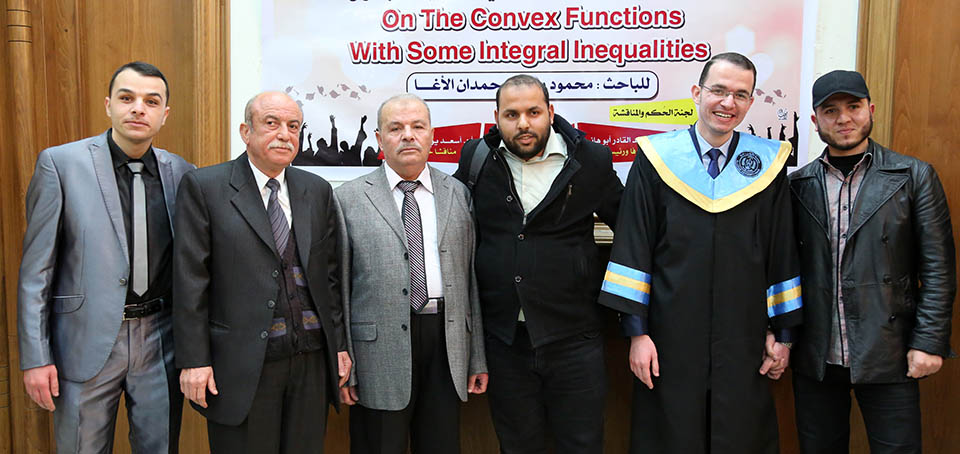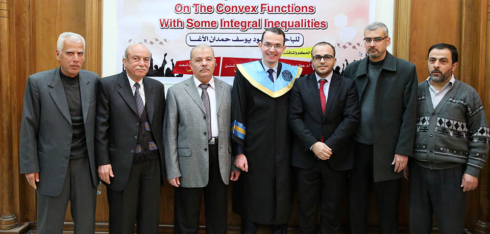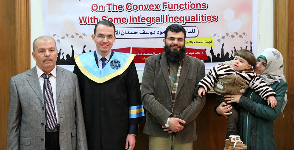 حول الدوال المُحدبة وبعض المتباينات التكاملية، وقد تكونت لجنة المناقشة من أ. د. عطا عبدالقادر أبوهاني، مشرفاً ورئيساً، أ. د. جمال محمد شنن، مناقشاً داخلياً، أ. د. أسعد يوسف أسعد، مناقشاً خارجياً.