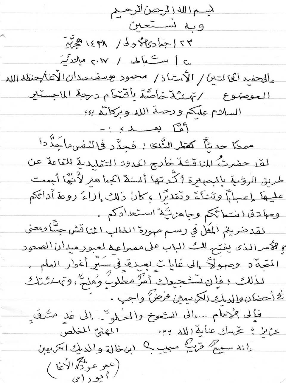 تهنئة مقدمة من أ. عمر عودة الأغا
