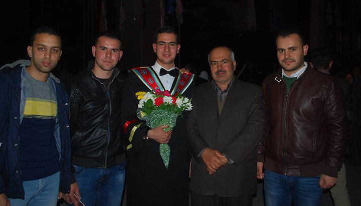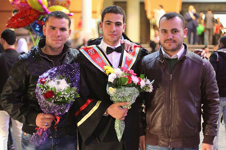 الخريج يتوسط والده وشقيقيه أ. حسام وأ. إيهاب