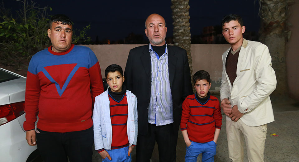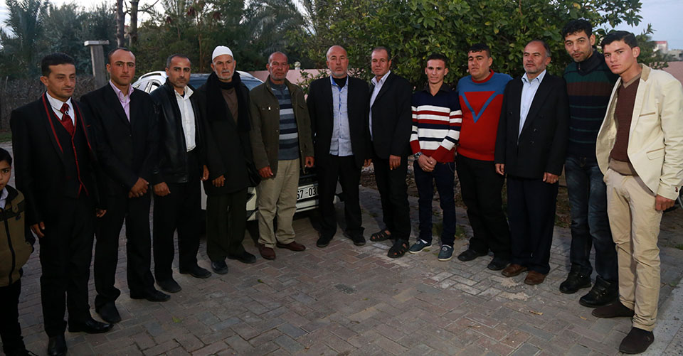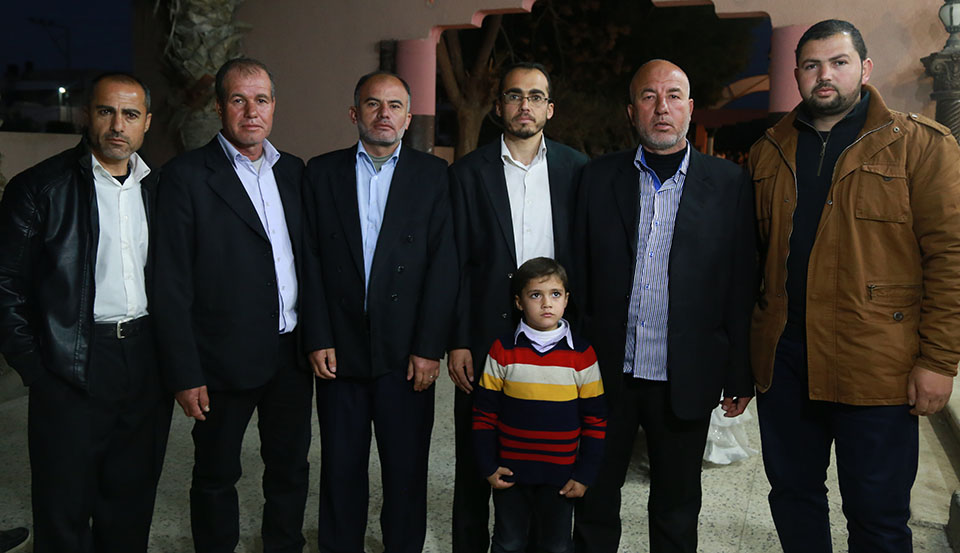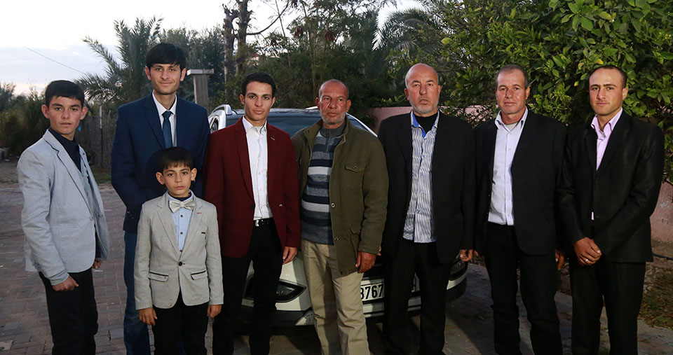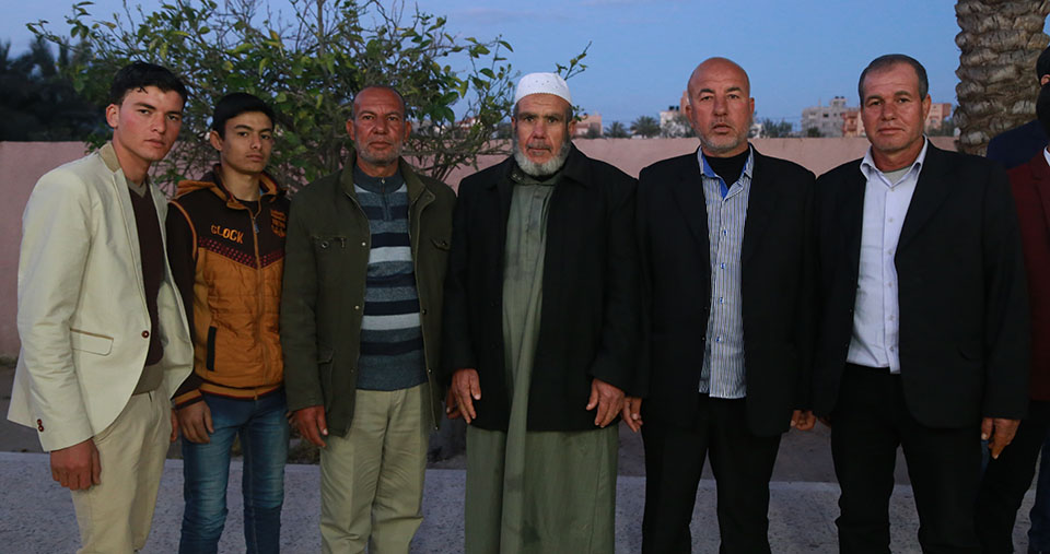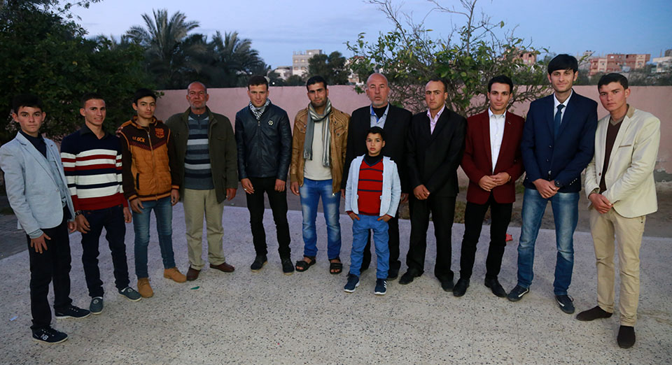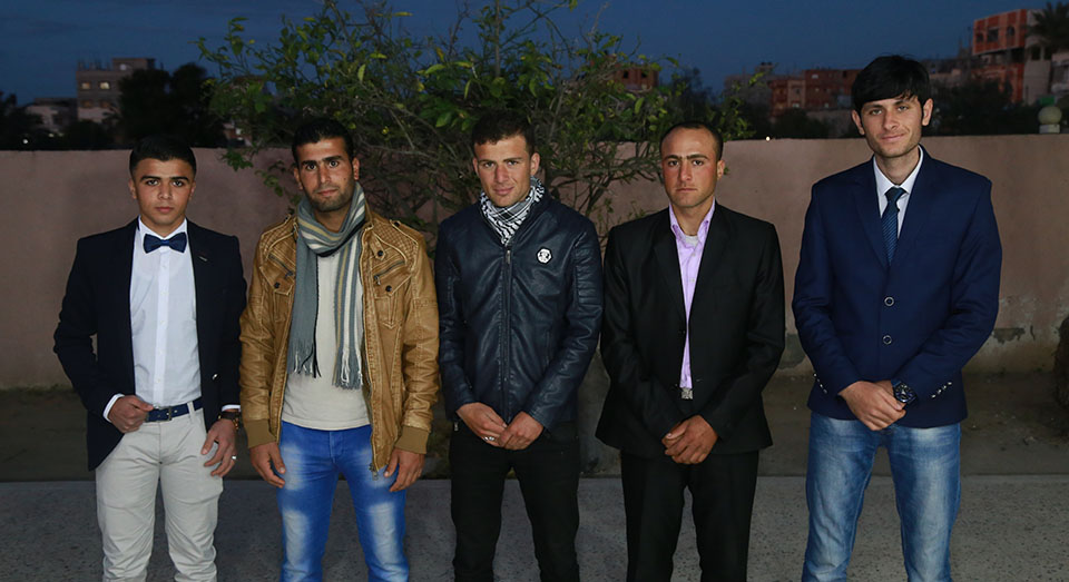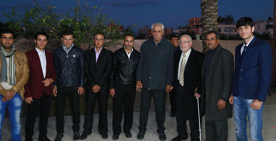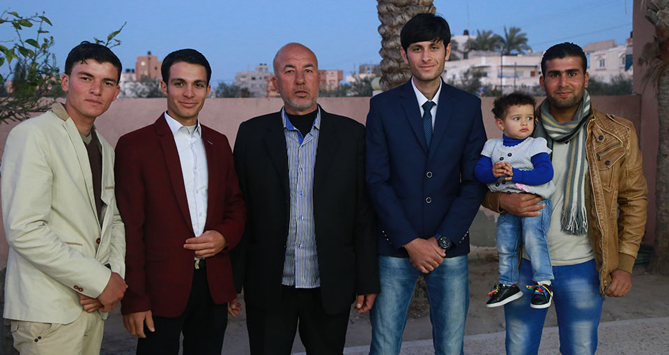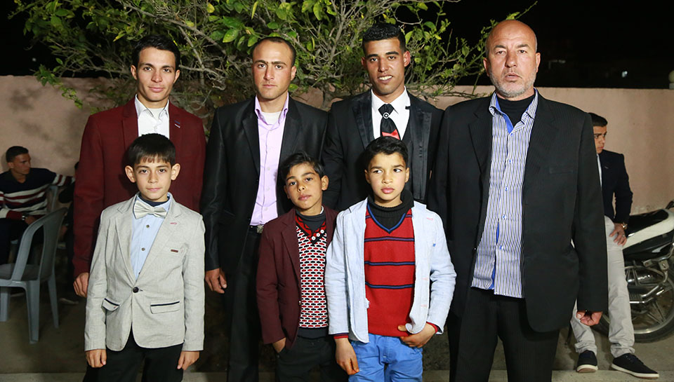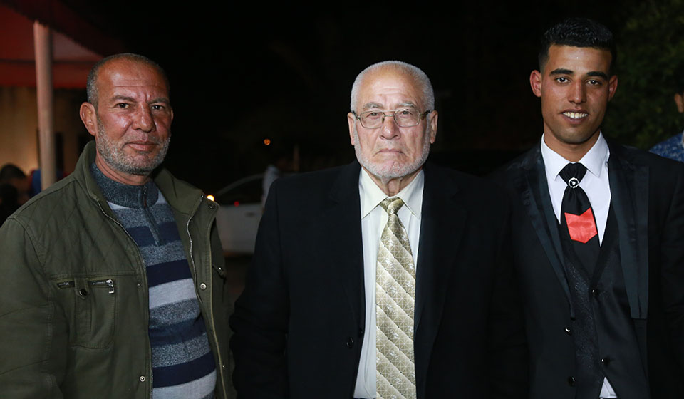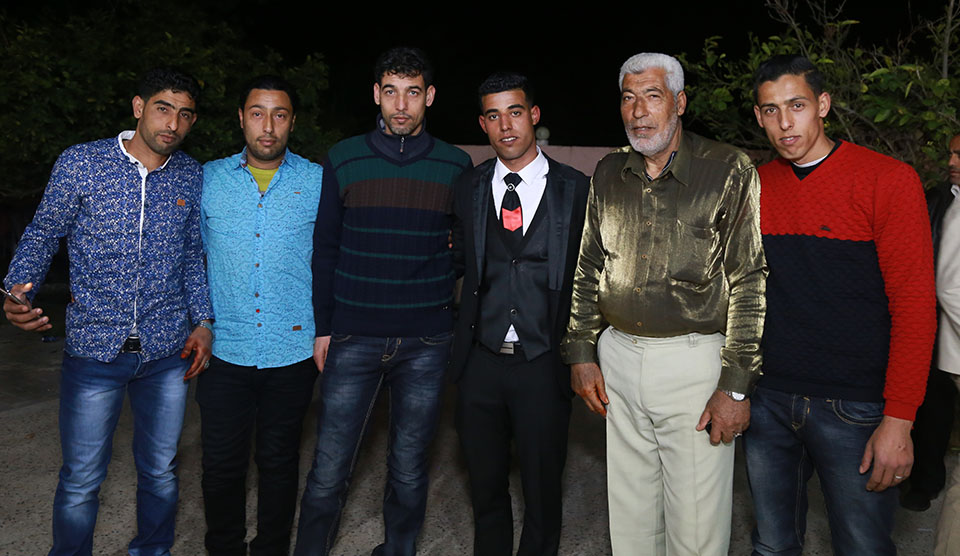 العريس يتوسط جده الحاج حمدي إبراهيم البيوك، وأخوال العريس