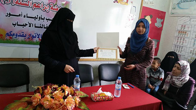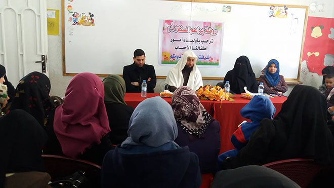 عقدت مديرة الروضة أ. هديل الاغا لقاءً مع أولياء أمور الطلبة لمناقشة بعض الأمور المتعلقة بمستوى الأطفال وأكدت على أهمية دور الأسرة بتعاونهم مع المرييات فى الارتقاء بمستوى الاطفال وشددت بان من الضرورى اقامة اجتماعات دورية لمتابعة مستوى الاطفال التعليمى واستقبال أراء الاهالى وتقبل مقترحاتهم والتواصل المستمر مع المربيات .