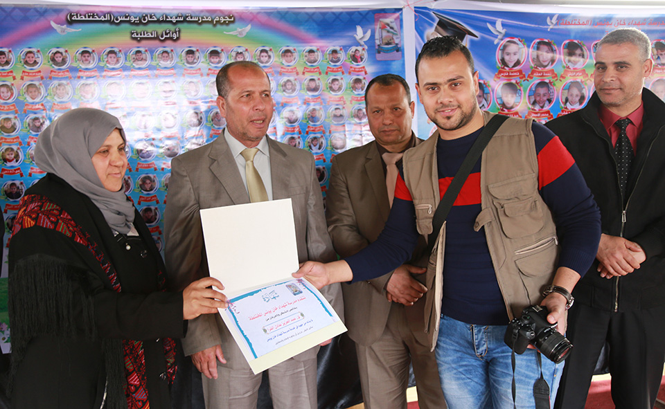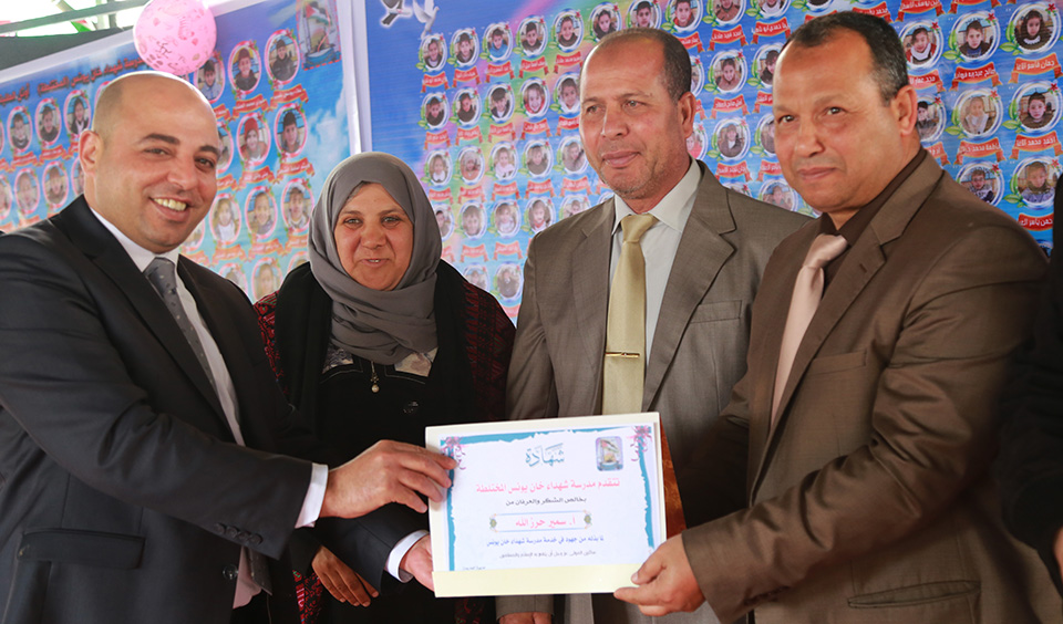 في حفل مهيب قامت إدارة مدرسة شهداء خان يونس المختلطه بتكريم أوائل الطلبة وذلك يوم الأثنين الموافق 27/2/2017، الحفل تكون من عدة فقرات ترفيهية وغنائية وأدبية بمشاركة عدد من الطلاب المدربين بشكل إحترافي، وفي نهاية الحفل قامت الهيئة التدريسية وعلى رأسهم مديرة المدرسة والداعمين للحفل ومجلس أولياء الامور بتكريم الطلاب المتفوقين. الف مبارك
