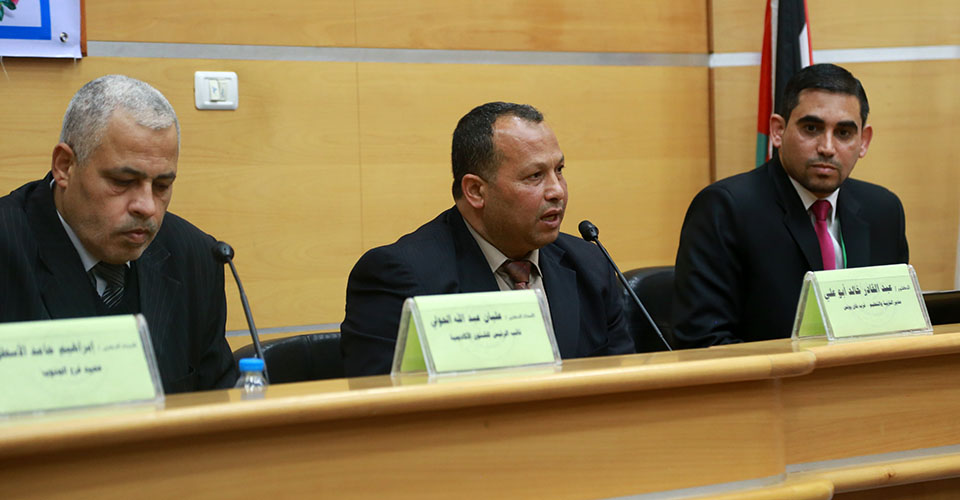 أ. مجدي برهوم، د. عبد القادر أبو علي (مدير التربية والتعليم خان يونس)، د. عليان الحولي