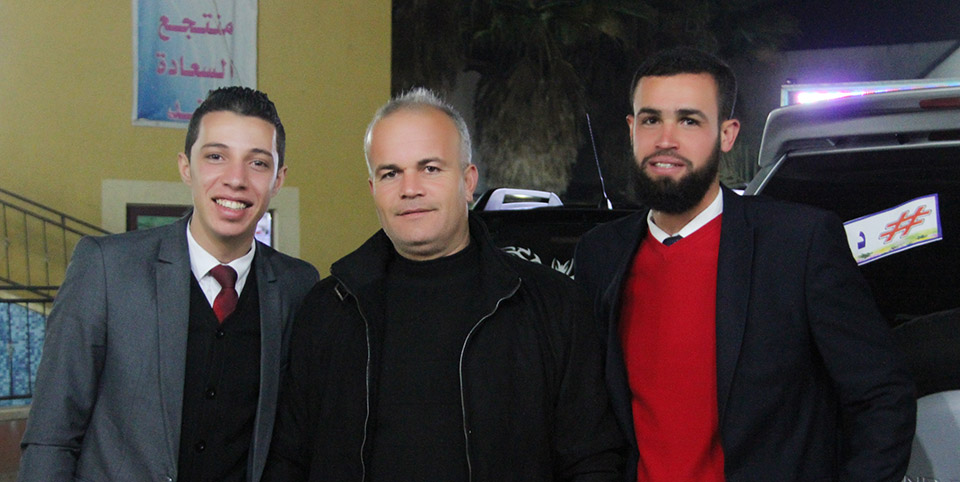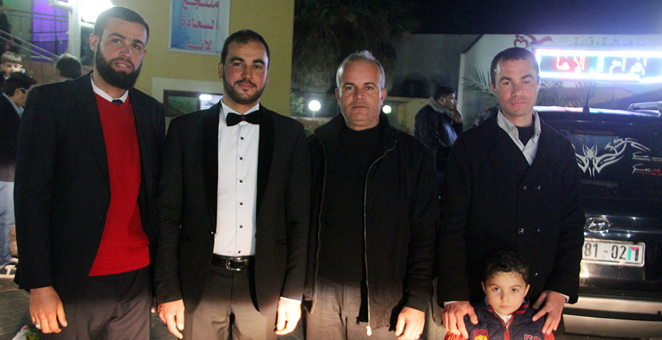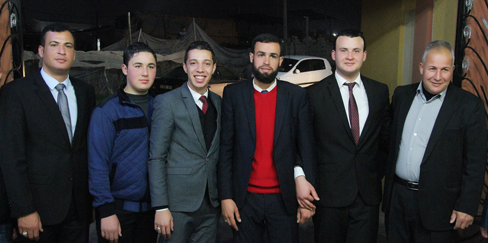 أ. جهاد(عم العريس)، العريسٍ ، الحاج فؤاد، والد العريس، الحاج فؤاد مصطفى(خال العريس)، أ. فضل حمدان(عم العريس)