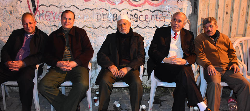 الحاج حمدي، أ. مصطفى يوسف، أ. جهاد(عم العريس)، العريس، والد العريس، أ. فضل(عم العريس)، أ. هلال اسعد