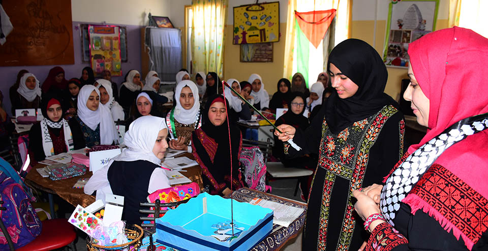 وتمحور الدرس حول توظيف الوسائل والتقنيات الحديثة والتكنولوجيا في تعليم اللغة الإنجليزية وربط الدرس (التطريز) بالواقع المحيط بالطالبات وتراث بلادهم , وقامت بتنفيذ الدرس أ.فاطمة الأسطل معلمة اللغة الانجليزية في المدرسة مستخدمة كافة طرائق واستراتيجيات وتقنيات التدريس الحديثة في عرضها للدرس .
