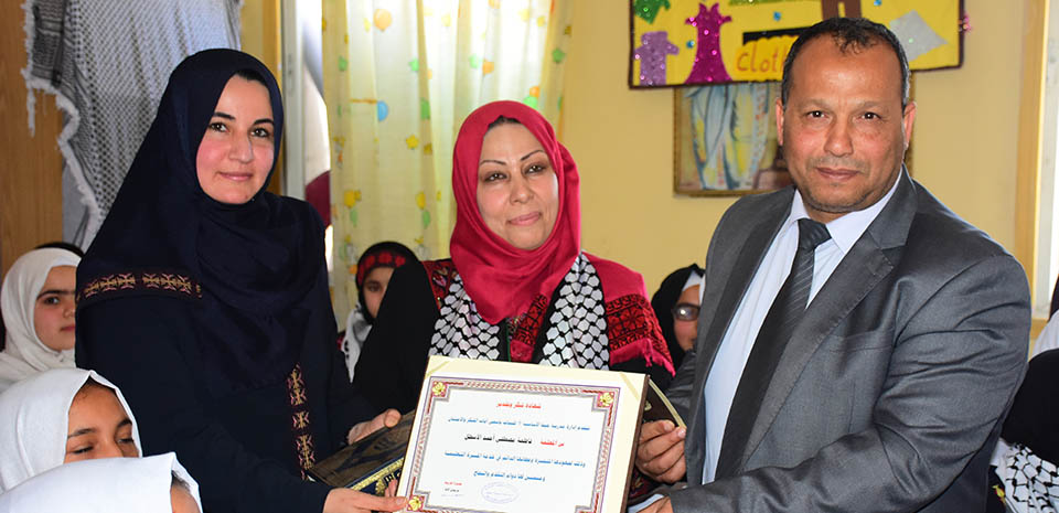 وبدوره أشاد نقيب المعلمين أ.المزين بجهود المعلمة الواضح في ميدان وحقل التدريس مما انعكس ايجاباً على مستوى التحصيل والمشاركة لدى الطالبات