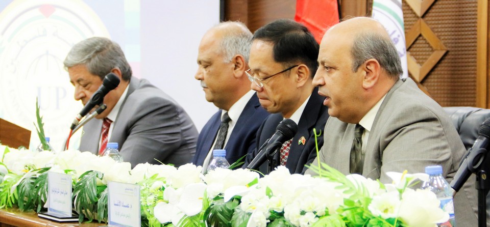 بدوره أعرب الأغا عن مدى أهمية هذه الزيارة وقيمتها للجامعة، كما تحدث عن تاريخ دولة الصين وعن قدم العلاقات بين دولة فلسطين وجمهورية الصين.
