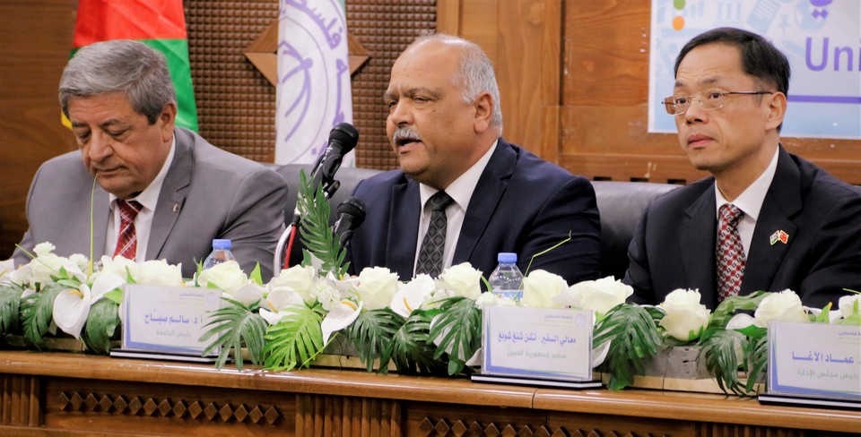 من جانبه، شكر السفير الصيني(تشن شينغ تشونغ)، إدارة الجامعة على حفاوة الاستقبال، كما أوضح أن هذه الزيارة ما هي الا لتعزيز العلاقات بين فلسطين والصين.