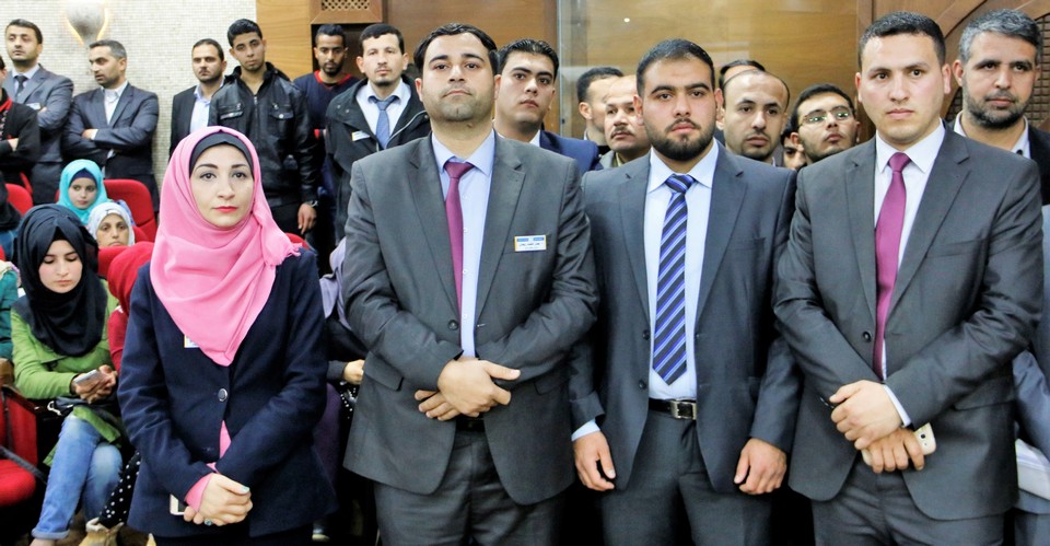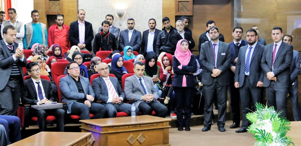 وكان في استقبالهم رئيس مجلس الإدارة المهندس (عماد الأغا)، و رئيس جامعة فلسطين الأستاذ الدكتور(سالم صباح)، ولفيف من النواب وعمداء الكليات و الأكاديمين.