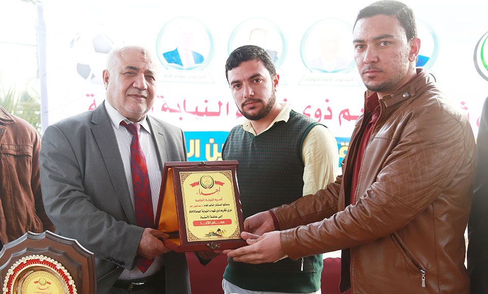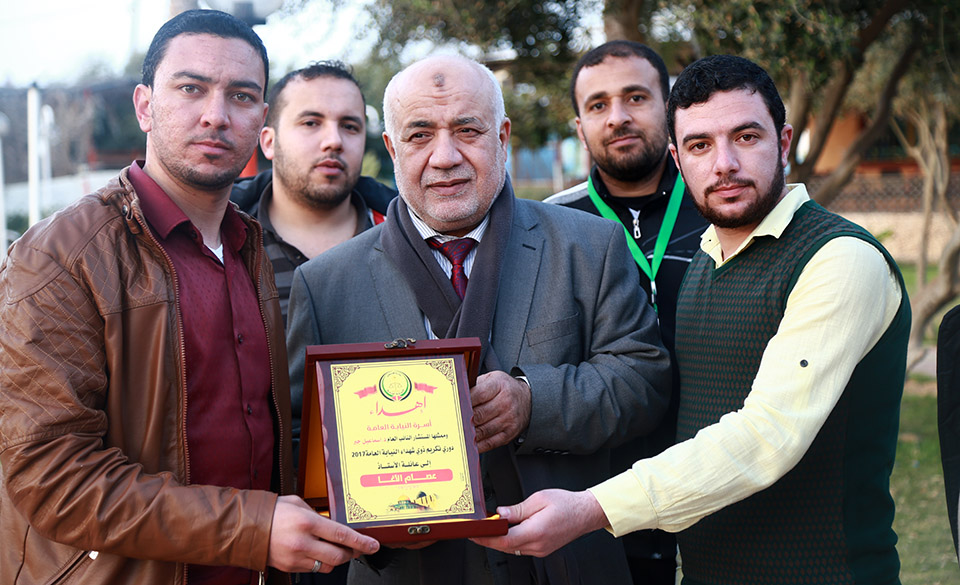 غزة- الشيخ عجلين- منتجع الدولفين- الخميس 23-03-2017- النائب العام د. إسماعيل جبر، يكرم عائلة الفقيد عصام عثمان الأغا، في دوري كرة القدم الداخلي بين النيابات في قطاع غزة