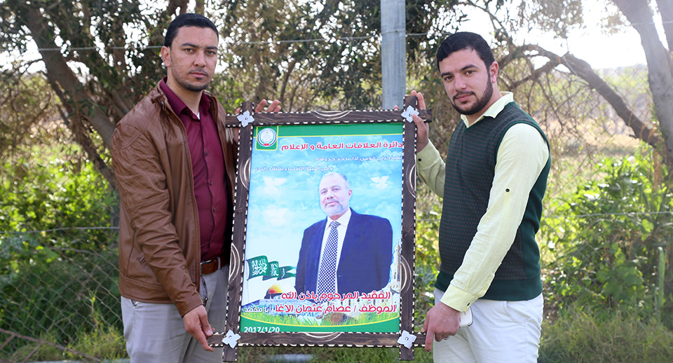 د. إسماعيل جبر يكرم عائلة الفقيد عصام عثمان الأغا( أ. محمد وشقيقه أ. أحمد)