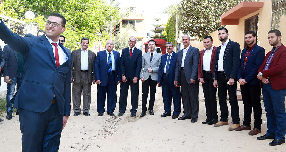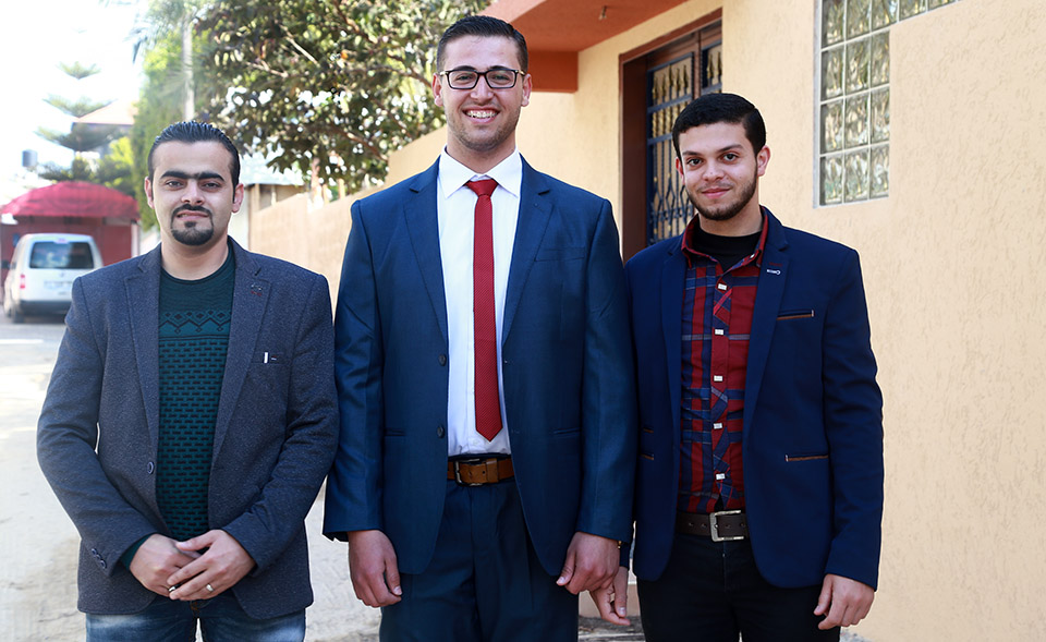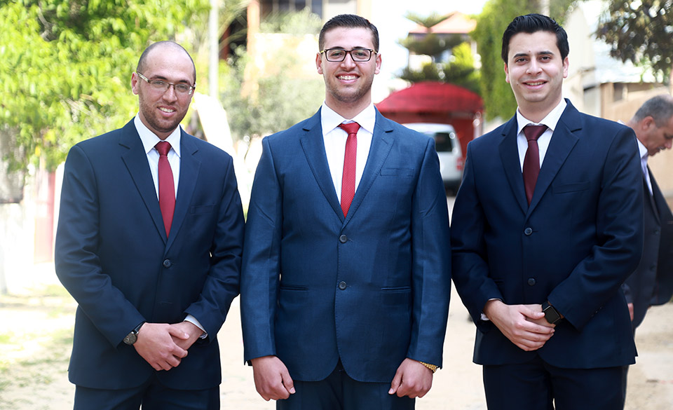 العريس يتوسط إبن عمه أ. نضال بسام النفار، وشقيقه أ. هيثم