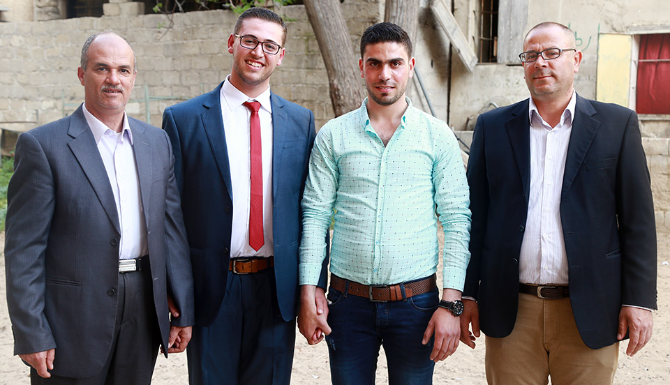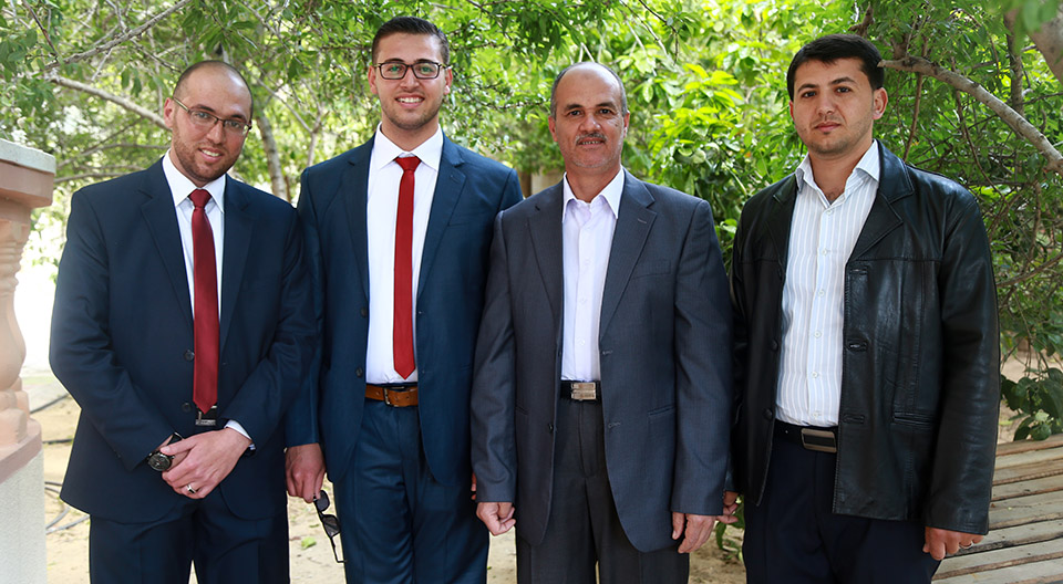 ا.غسان النفار(والد العريس) , د. فيصل (عم العريس)، العريس، أ. بسام وشقيقه أ. سامي (عما العريس)