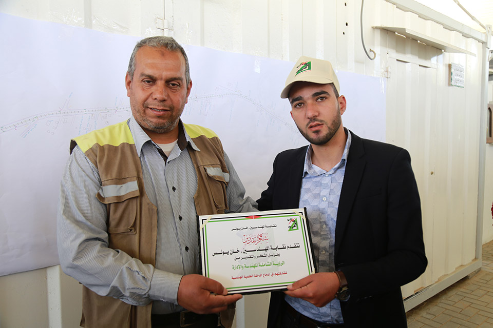 م. منصر عاشور(عضو مجلس ادارة فرع خان يونس)، م أحمد العزازي(مدير المشروع الاستشاري)