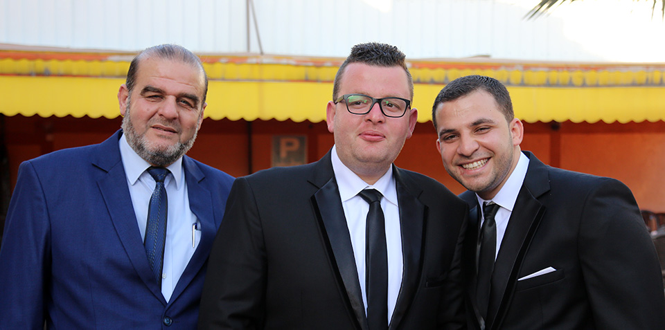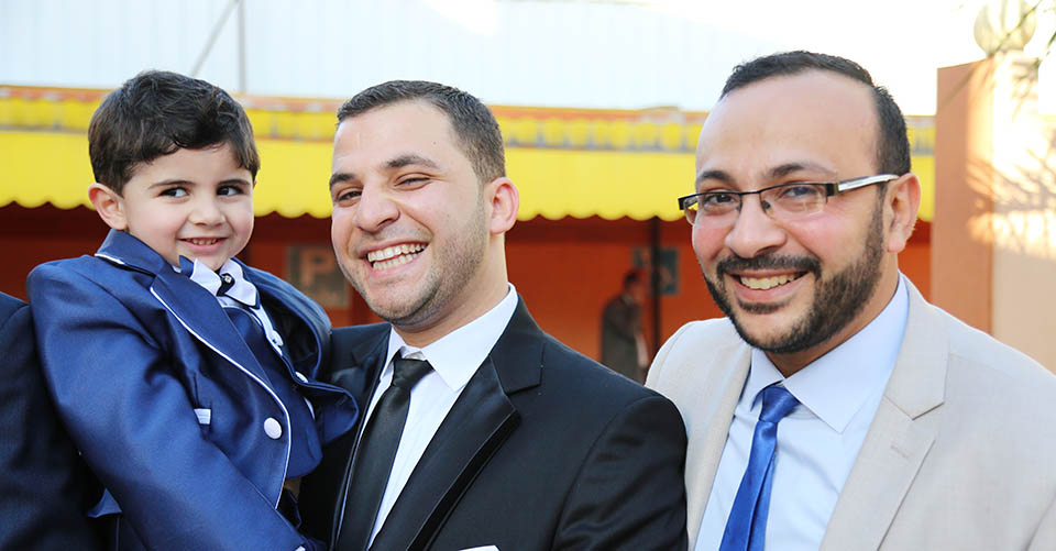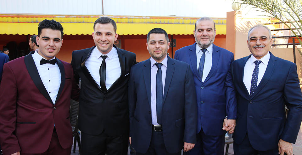 والد العريس، أ. صلاح البطة(عم العريس وخال العروس)، م. محمد فريد الأغا(عديل العريس)، العريس، حمزة(شقيق العروس)