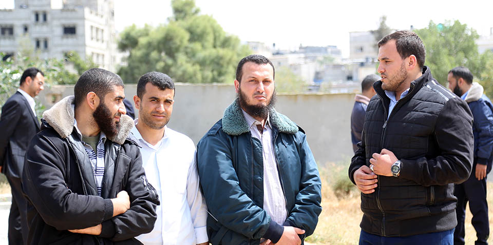 د. إسماعيل هنية، الشيخ عبد المصري، د. يونس الأسطل، أ. تيسير، أ. عبدالله(نجلا الفقيد)