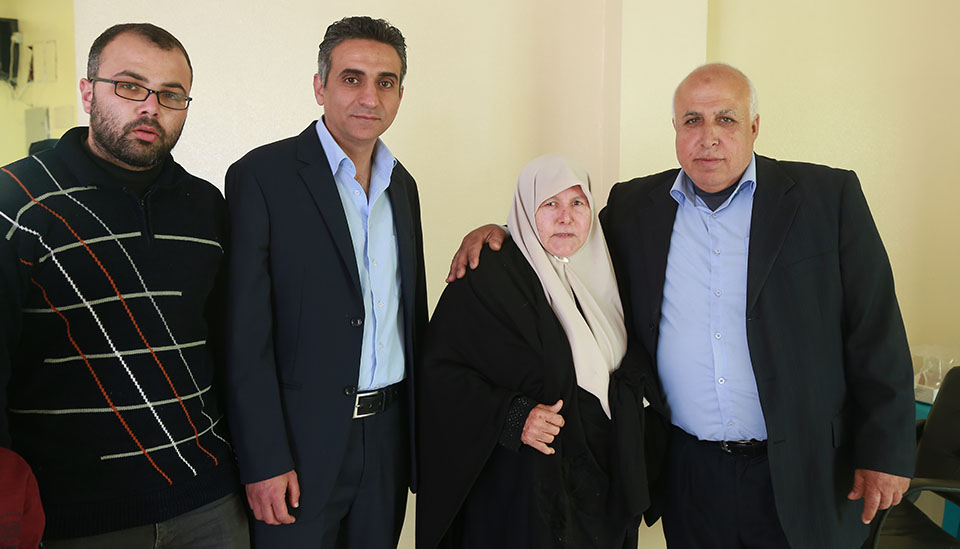 الحاجة أم سامرأبو جزر(والدة زوج الباحثة)، الباحثة، الحاجة أم محفوظ (جدة الباحثة) ونجلها ا. باهر، أ. محمود أسامة الأغا، فراس امجد الاغا(إبن عم الباحثة)