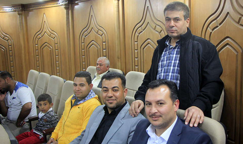 الباحثة وزوجها، محمد عدنان العبادلة، أبو العز العبادلة، إبراهيم العبادلة ونجله سعيد، أ. يحيى العبادلة، محمد حيدر الأغا، أ. نضال العبادلة
