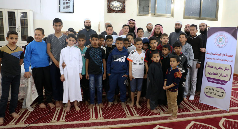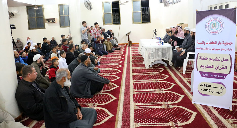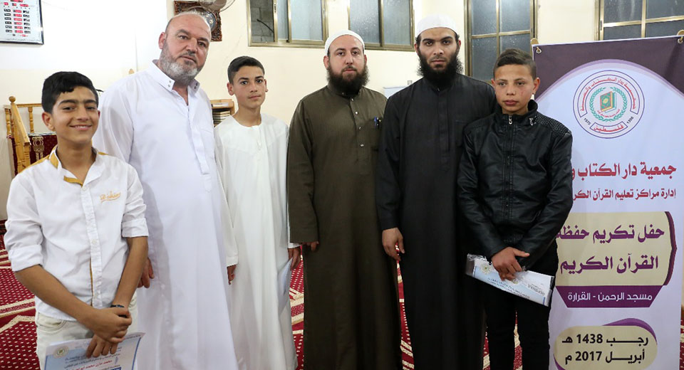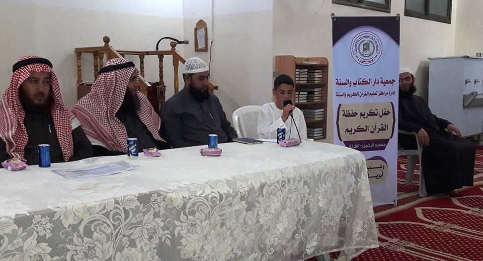 خان يونس: احتفلت إدارة مراكز تعليم القرآن الكريم والسنة بدار الكتاب والسنة، بتخريج ثلاثة من حفظة كتاب الله عز وجل في مركز مسجد الرحمن ببلدة القرارة شمال محافظة خان يونس، وذلك بحضور المكرمين وذويهم وأهالي المنطقة ولفيف من الدعاة، وكان من ضمن الحافظين الثلاثة عدنان محمد أحمد الأغا.