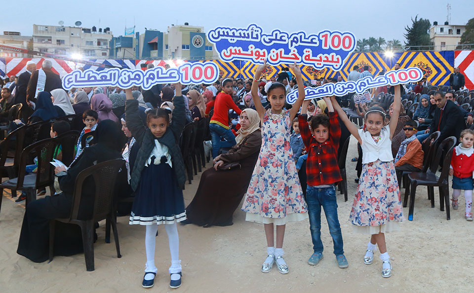 خان يونس الإثنين 01-05-2017 أقيم الحفل المركزي لإطلاق فعاليات الذكرى المائة لتأسيس بلدية خان يونس، وتم إفتتاح مركز خدمات الجمهور بحلته الجديدة، وذلك بمناسبة مرور 100 عام على تأسيس بلدية خان يونس.