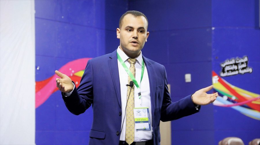 الباحث أ.حسام محمد الاغا، والذي حصل حلى الترتيب الثاني بمسابقة افضل رسالة ماجستير في ثلاث دقائق