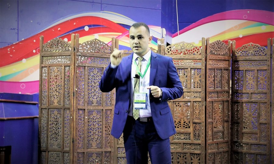 أ.حسام محمد الاغا متحدثا عن عنوان بحثه