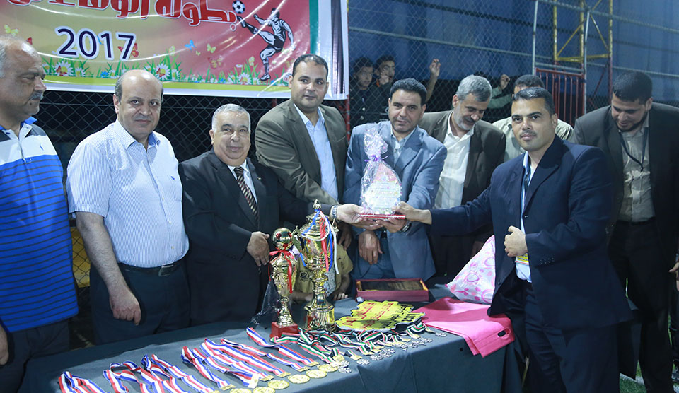 وقد جرى الحفل الختامي للبطولة على ملعب الفدائي بحضور د. أحمد الشيبي محافظ خان يونس ،م.عماد الاغا رئيس مجلس ادارة جامعة فلسطين،د.سالم صباح رئيس جامعة فلسطين ،د.اكرم شعت رئيس فرع جامعة فلسطين بالجنوب ،ود.مازن ابو زيد مدير ادارة المخيمات بقطاع غزة وأ.شريف الددا رئيس اتحاد كرة القدم بجنوب قطاع غزة وأ.عماد السنوار واحمد الهندي ممثلين عن وزارة الشاب والرياضية، والمقدم :علي ابو طير مدير شرطة الشرقية ، م.يحيى الاسطل رئيس بلدية خان يونس ،و اعضاء اللجنة التنفيذية لمجلس عائلات محافظة خان يونس وممثلي العائلات في محافظة خان يونس ، وممثلين عن الجهة الراعية للبطولة ، ولفيف من الوجهاء والمخاتير والشخصيات العامة والمواطنين من محافظة خان يونس ، وعدد من الأسرى المحررين.