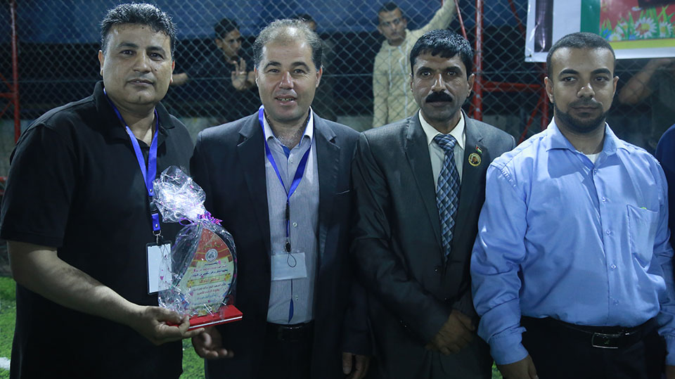 ومن جانبه اكد أ.عماد السنوار في كلمته ممثلاً لوزارة الشباب والرياضة على حرص وزارة الشباب والرياضة على دعم النشاط الرياضي في الساحات الشعبية والعمل على انجاح النشاطات الكروية المختلفة.