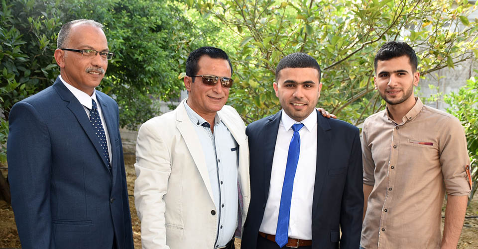 د. إبراهيم الفرا، العريس، د. عبدالرحمن الفرا، د. أشرف شراب، والد العروس