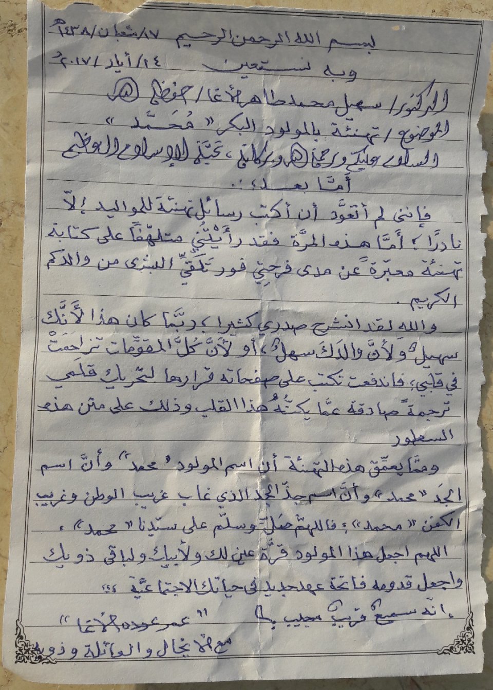 الرئيسة/مولود جديد/رزق د. سهيل محمد طاهر بمولود مولود جديد رزق د. سهيل محمد طاهر بمولود تاريخ النشر : الثلاثاء | 16-05-2017 | 09:06 5468 رزق د. سهيل محمد طاهر بمولود محمد والف مبارك. تهنئة مقدمة من أ. أبورامي للدكتور سهيل بمناسبة قدوم المولود محمد اضغط هنا للتواصل أو التعرف على الدكتور سهيل محمد طاهر حافظ عثمان الأغا يمكنك تلقي أحدث الأخبار أول بأول بانضمامك لإحدى مجموعات الواتساب الخاصة بالعائلة من خلال الضغط هنـا اظهر المزيد
