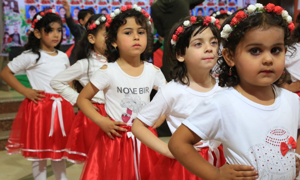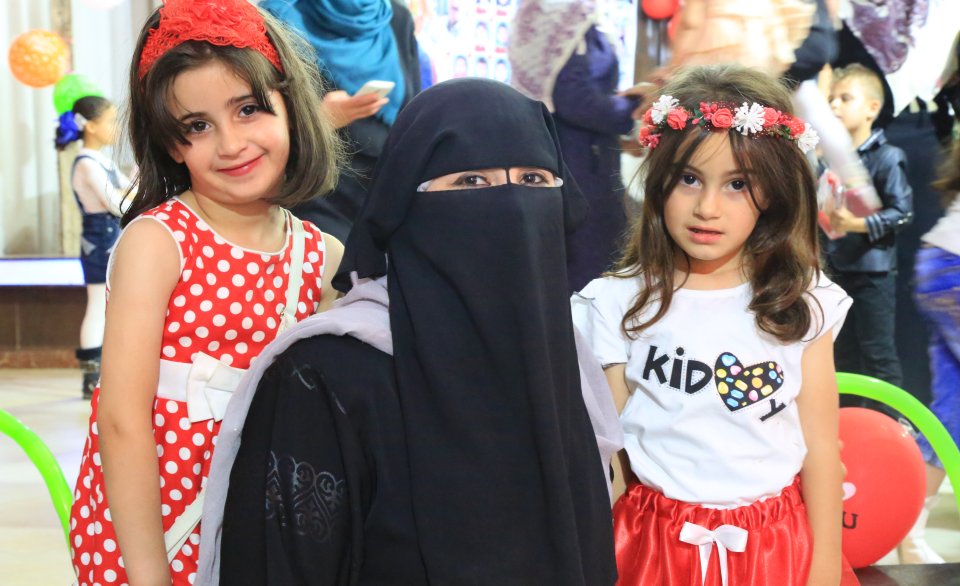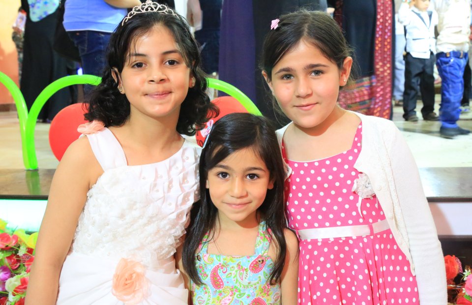 الطفلة جنى مهدي الأغا تتوسط اشقائها، هدي وأية