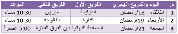 تتشرف اللجنة المنظمة للدوري الثقافي الرمضاني بدعوتكم لحضور فعاليات الدوري وذلك حسب الجدول المبين أدناه: