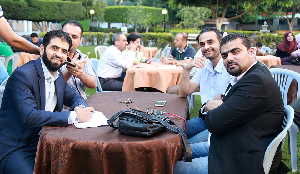 ا. إبراهيم الوادية، أ. احمد عبدالعال،أ. طلال النبيه، أ. عاصم النبيه، أ. حسام خليل عايش، د. مشير عامر، أ. خالد صافي، ا. عطية درويش، ا. محمد الزنط، أ. ياسر الأغا، أ. محمد اياد معمر، أ. صلاح نايف صافي، أ. انس نصر فحجان، أ. محمد عبد الفتاح منصور