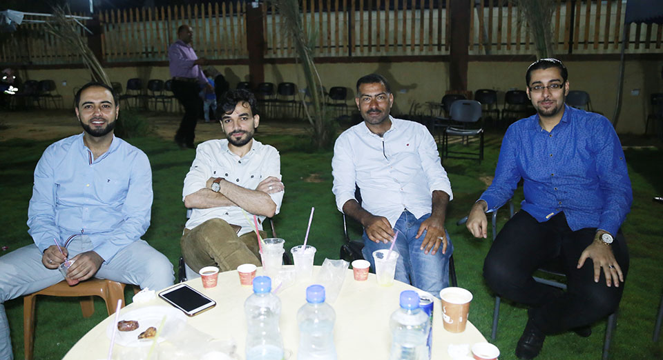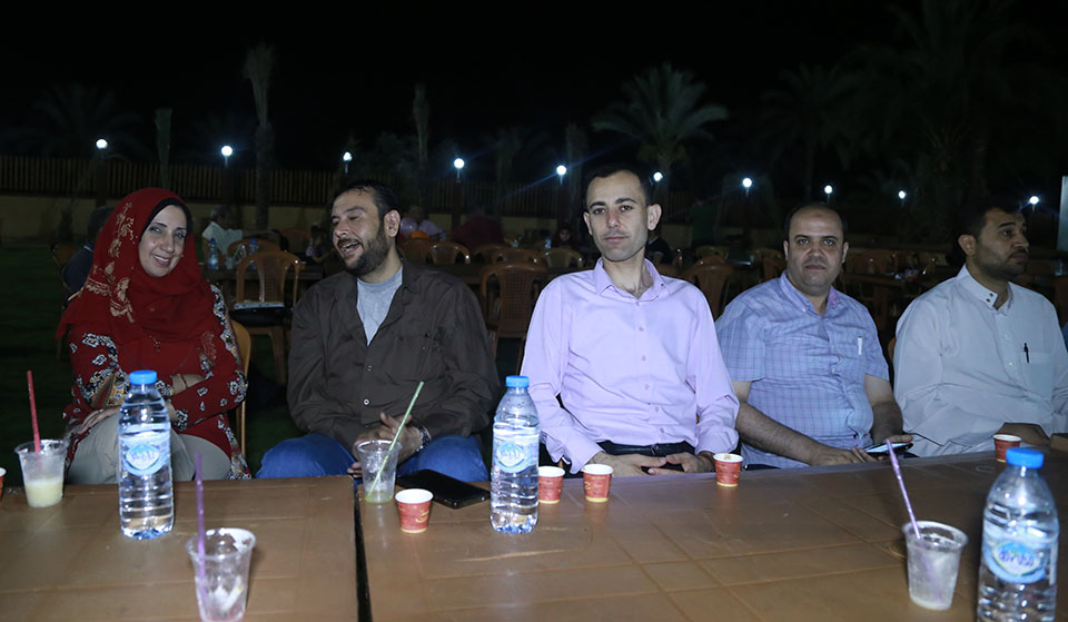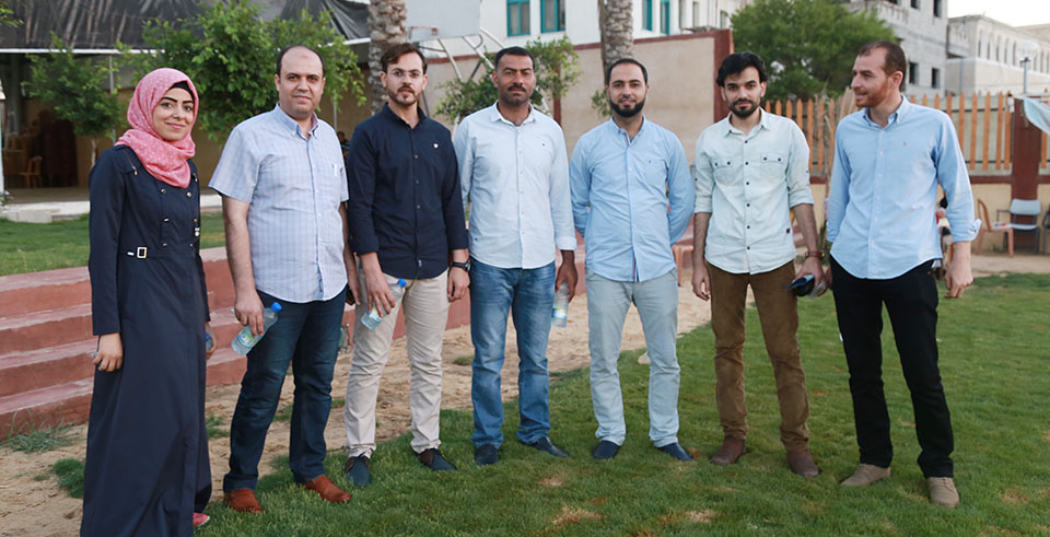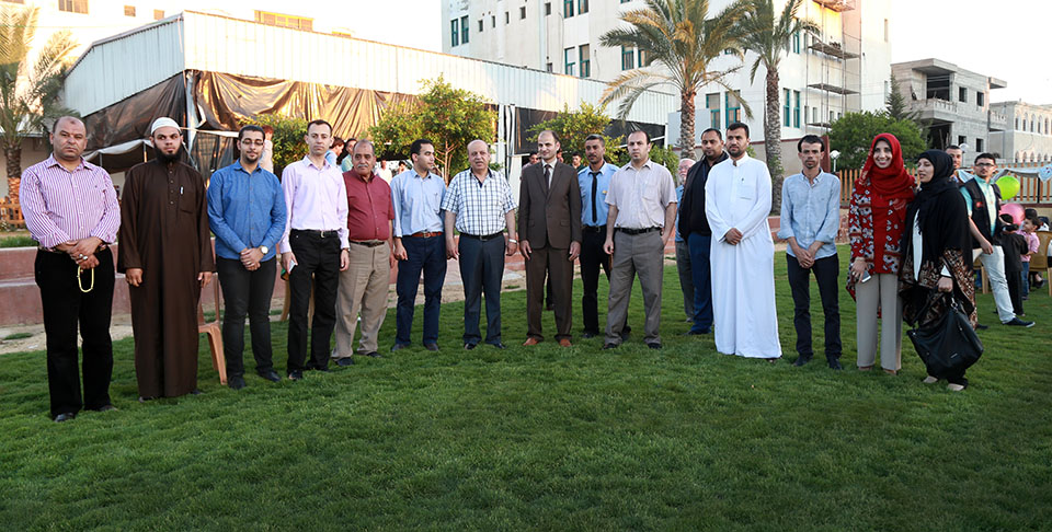 أ. فريد النواصرة، أ. عبدالله يونس، أ. عمار الحلو، م. هاني محمد الأغا (مدير جمعية ياردم التركية)، م. عماد خالد الأغا (رئيس مجلس إدارة جامعة فلسطين، د. فرج محمد الأغا، أ. إيناس ابو شاويش