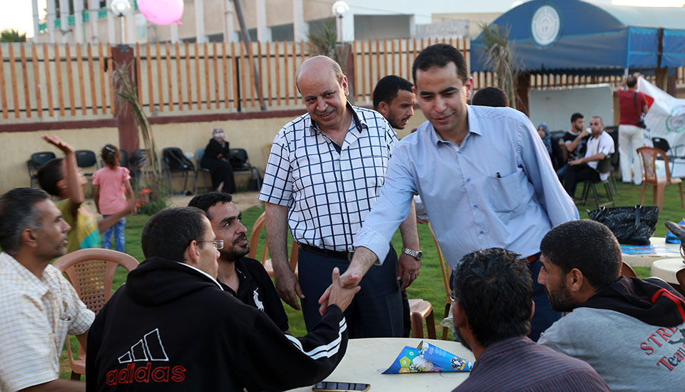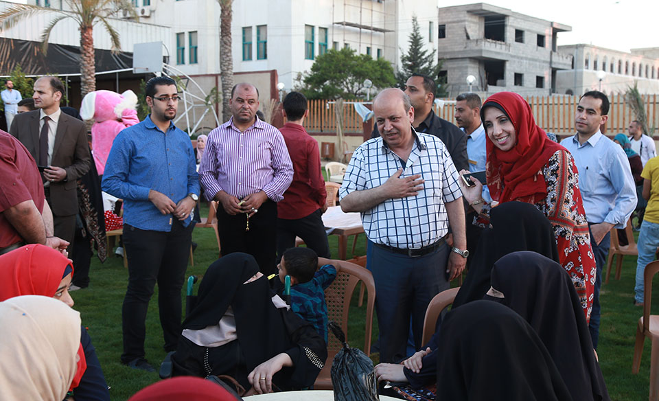 خان يونس- الخميس 16-06-2017- جامعة فلسطين وبالتعاوان مع جمعية ياردم لي التركية، تنظم إفطاراً جماعياُ لمرضى الكلى، وذوي الإحتياجات الخاصة، إستمرارا لفعاليات وأنشطة الجامعة في شهر رمضان المبارك ، وذلك ضمن فعالياتها المستمرة في تقديم الخدمات للمجتمع المحلي، في عدة مجالات تعليمية وصحية وترفيهية ، وتخلل الإفطار مسابقات ثقافية وترفيهية قدمت من خلالها الجامعة مجموعة من الهدايا للأطفال المرضى