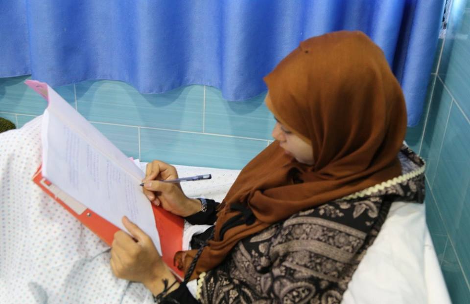 وأصرت على التقدم للامتحانات من مجمع ناصر الطبي الذي لا زالت تمكث فيه لتلقي الرعاية الطبية، وكلها أمل أن يتكلل جهدها بالنجاح والتفوق لعلها تُدخل الفرحة على قلب والديها، وأكدت الطالبة الأغا أنها تتمنى أن تصبح صحفية لتنقل هموم أهالي غزة للعالم كله وتدافع عن قضايا الناس من خلال منبر السلطة الرابعة، وشكرت الطالبة الأغا مديرية التربية والتعليم بخان يونس التي مكنتها من التقدم للامتحانات كأقرانها.